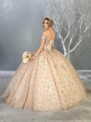 Vestido de quinceañera con hombros descubiertos y adornos LK152