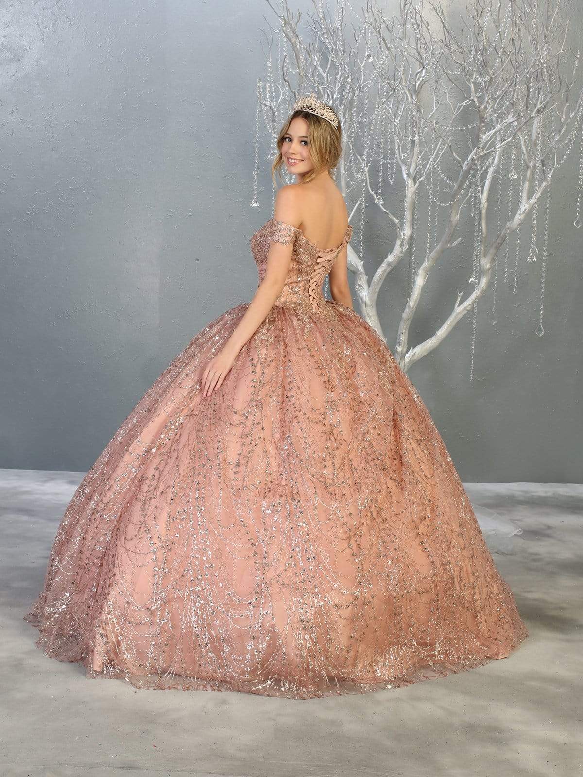 Vestido de Quinceanera con apliques florales y hombros descubiertos de Juliet 1445