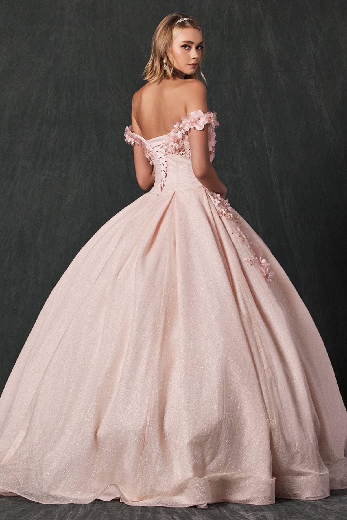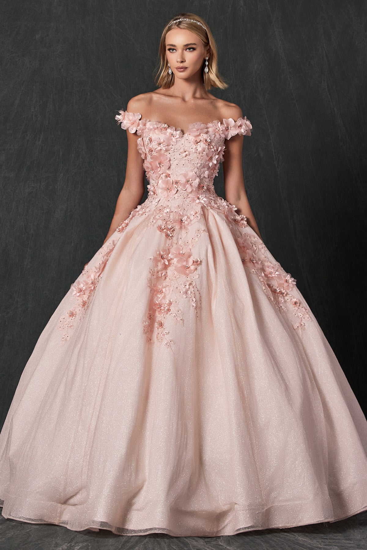 Vestido de Quinceanera con hombros descubiertos 3D Floral de Juliet 1434