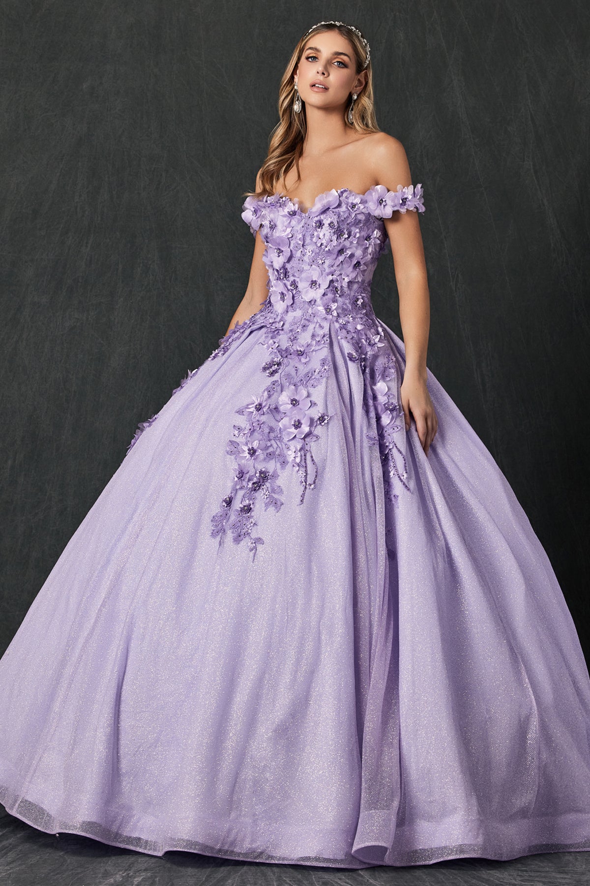 Vestido de Quinceanera floral con hombros descubiertos 3D de Juliet 1447