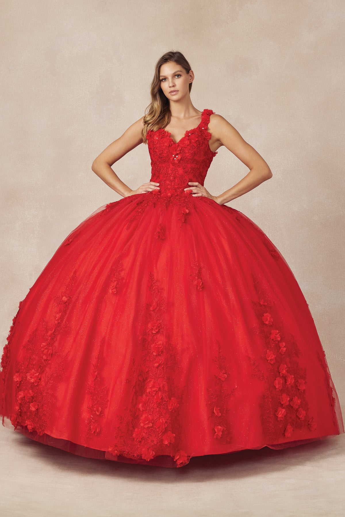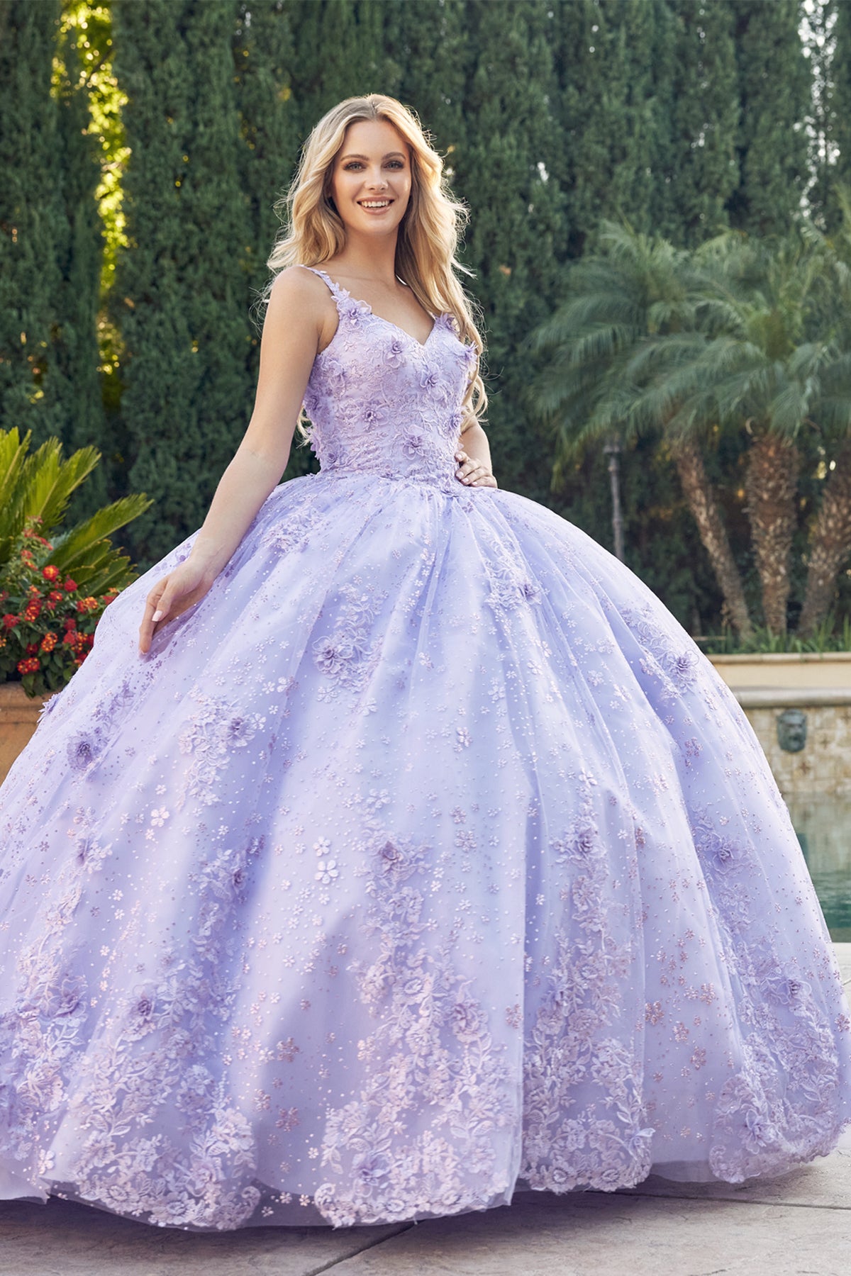 Vestido de Quinceanera floral 3D con purpurina de Juliet 1433