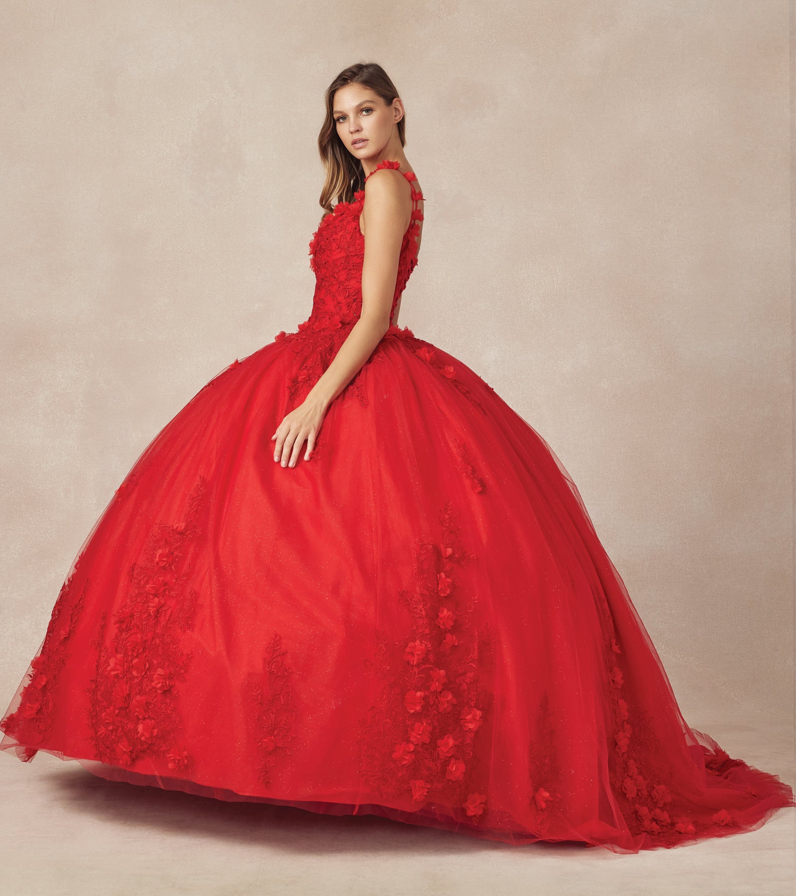 Vestido de Quince floral 3D sin mangas de Juliet 1437