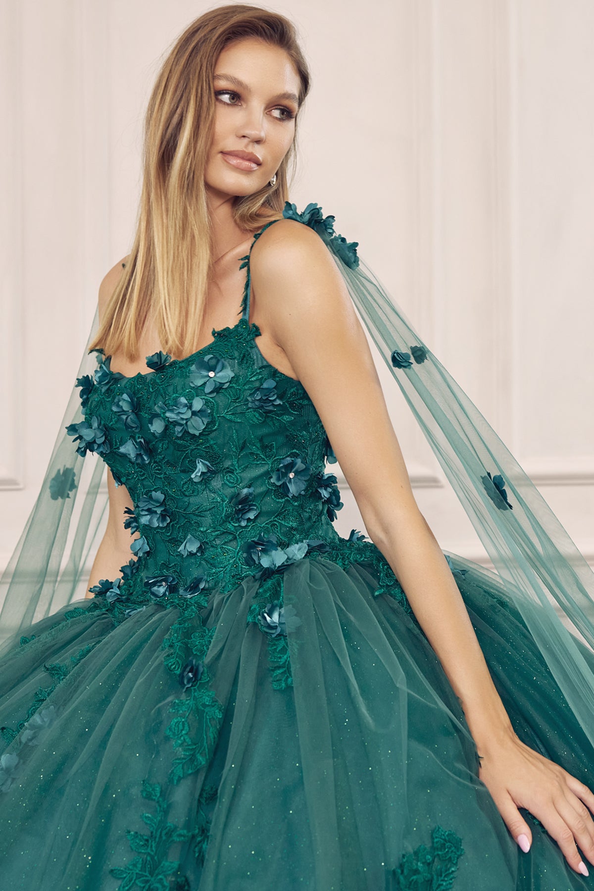 Vestido de Quinceanera con capa floral 3D de Juliet 1435