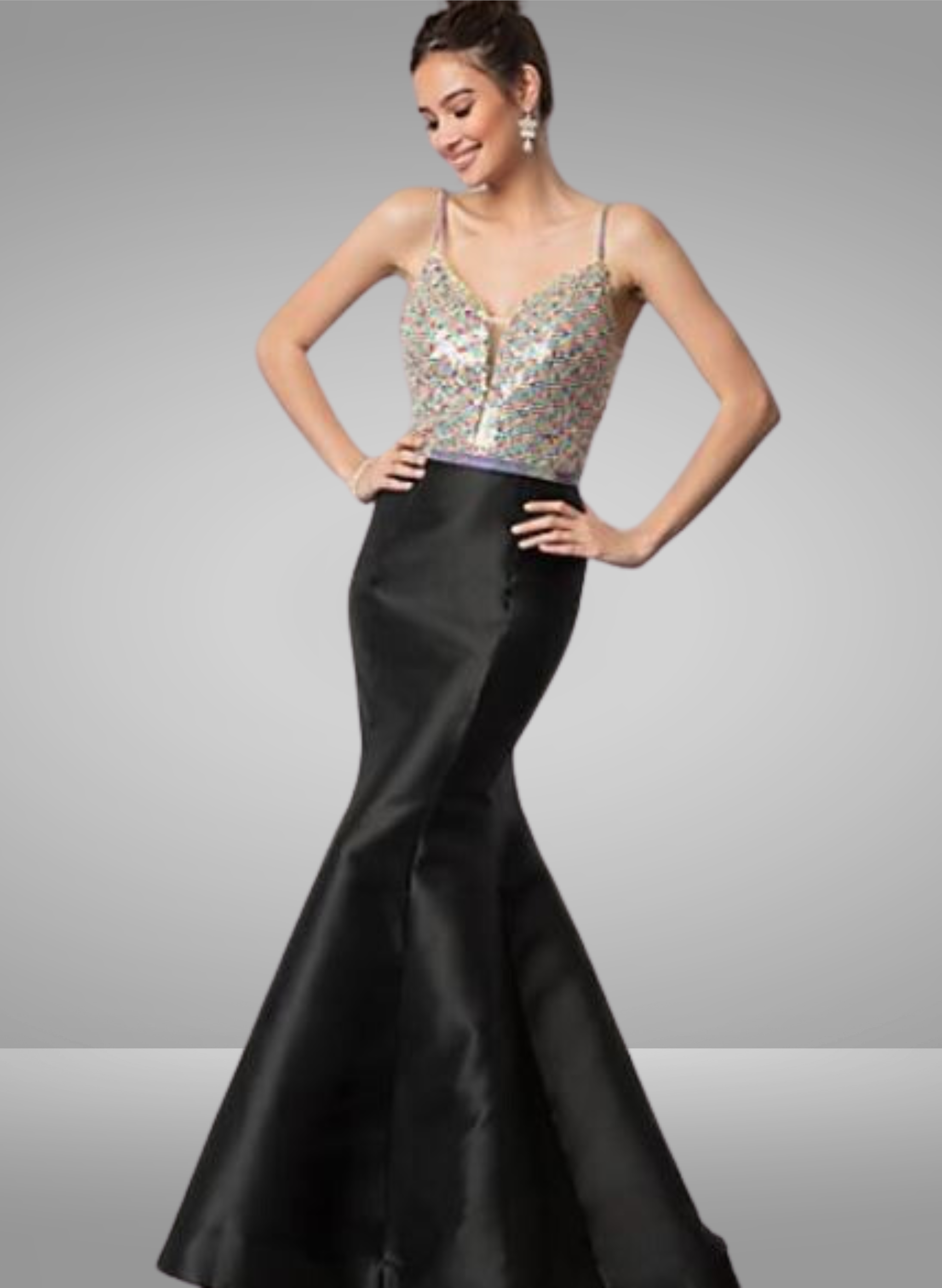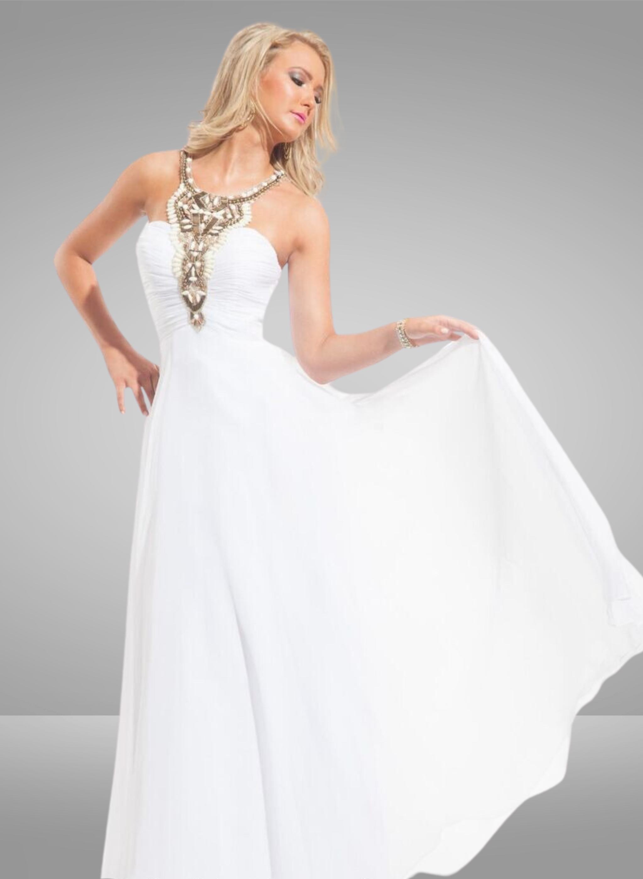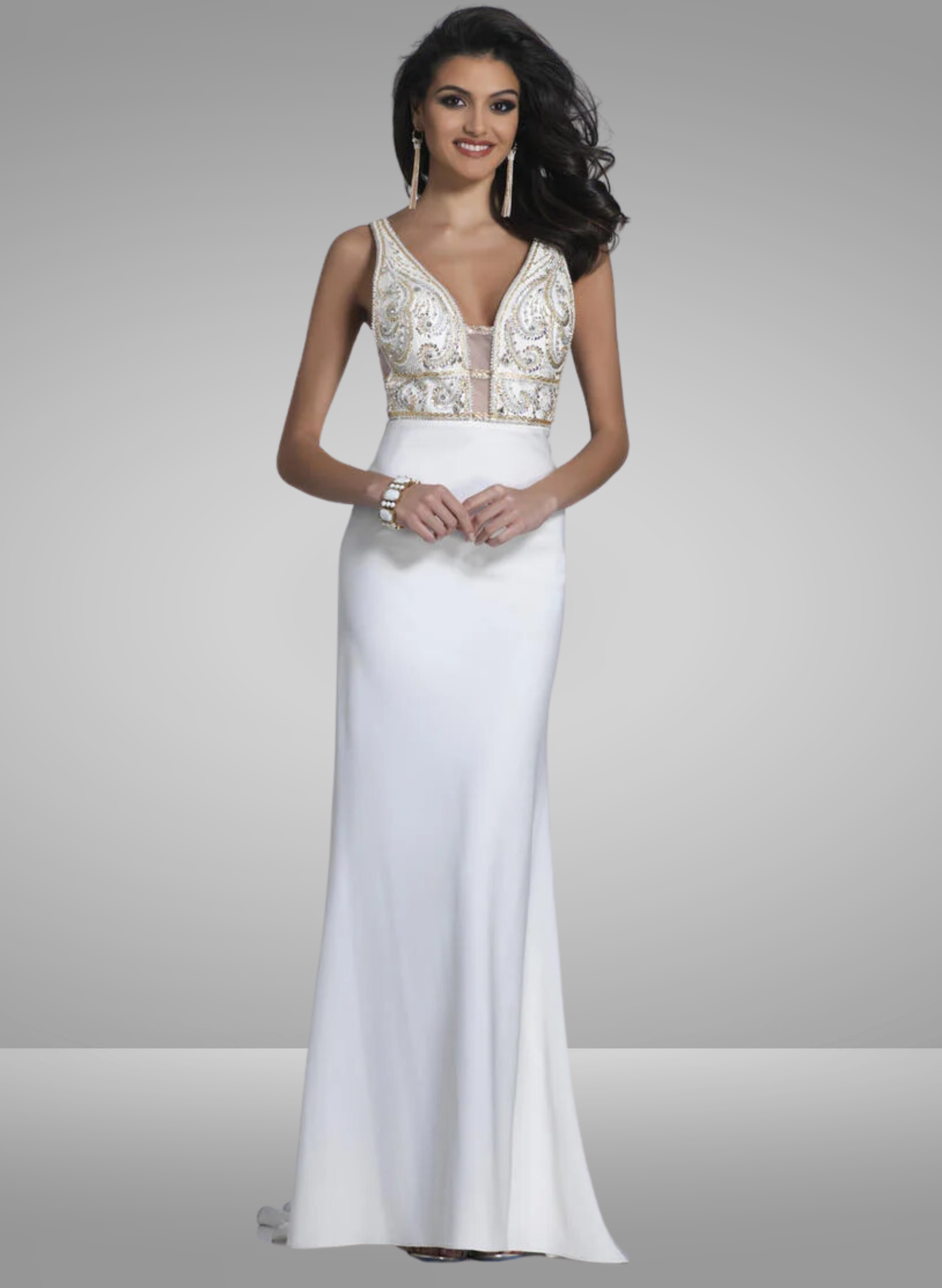 Ladivine CB136 - Vestido de noche con ilusión de perlas
