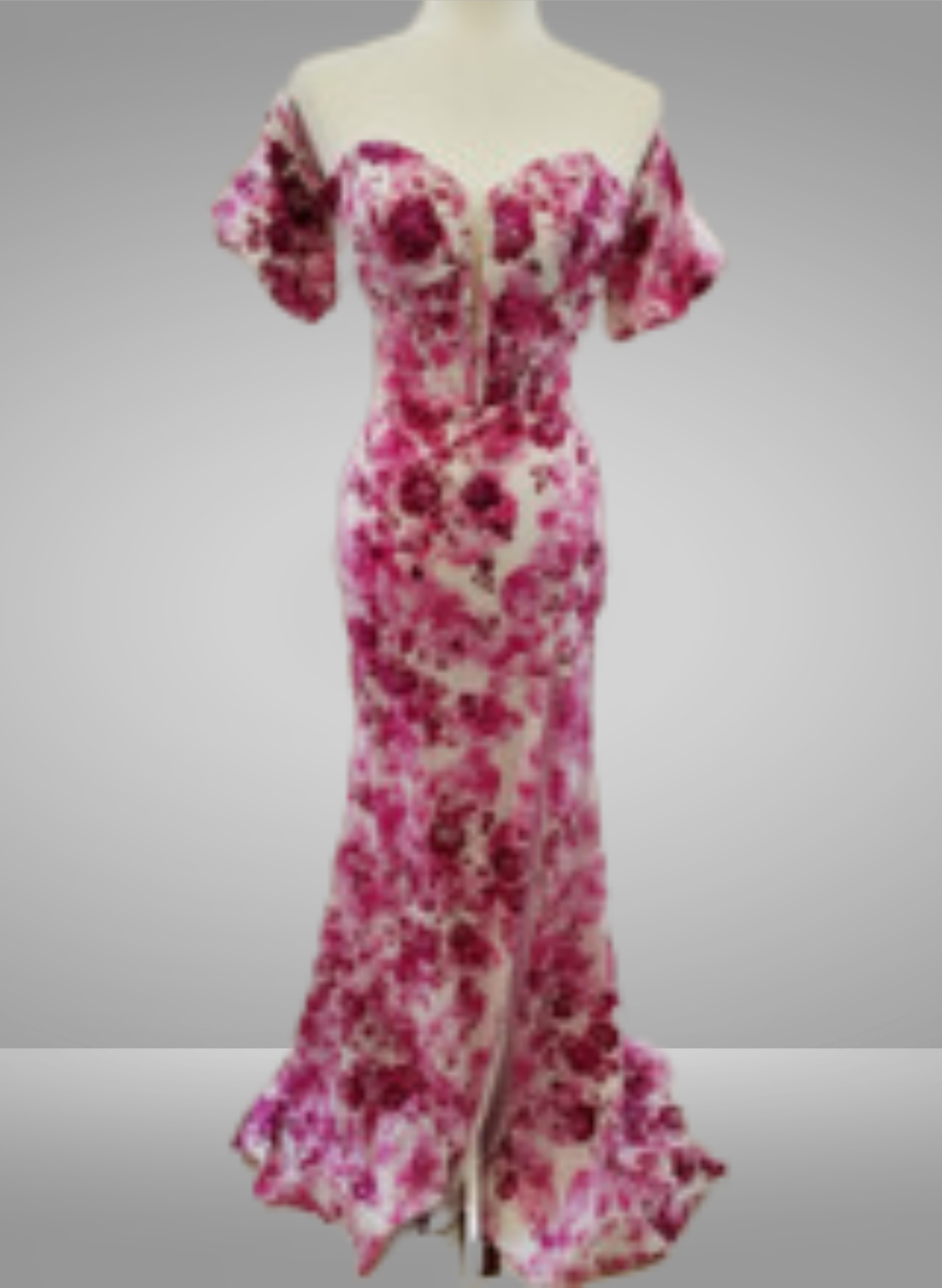 Andrea & Leo A1330 - Vestido de noche de flores en 3D con escote corazón