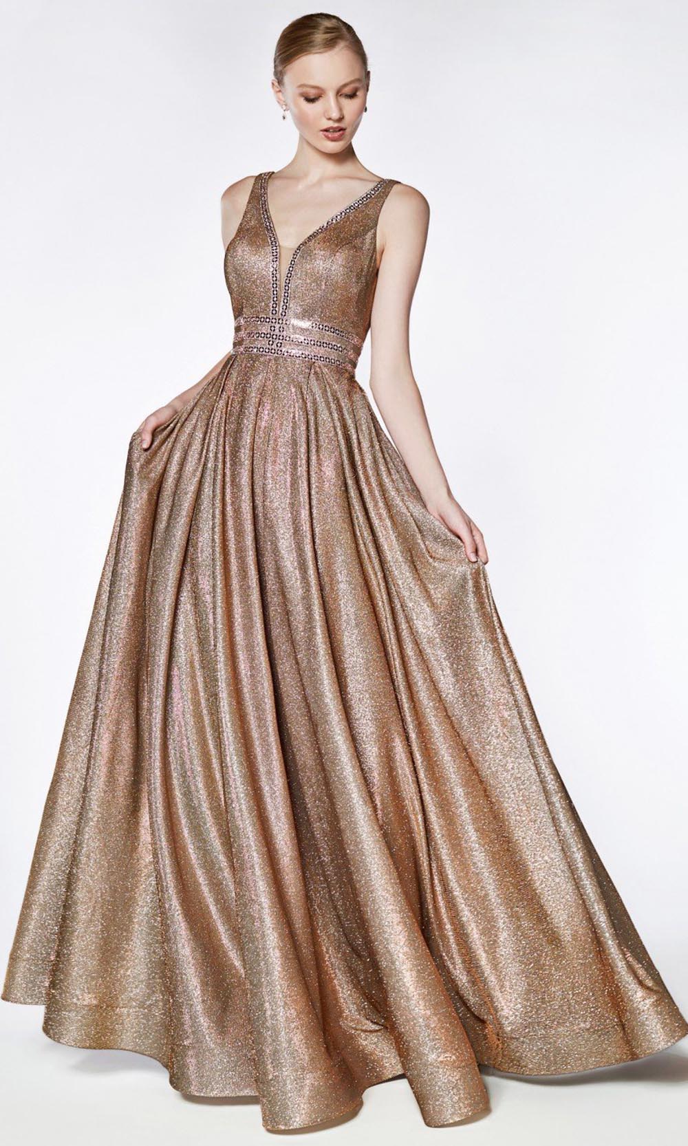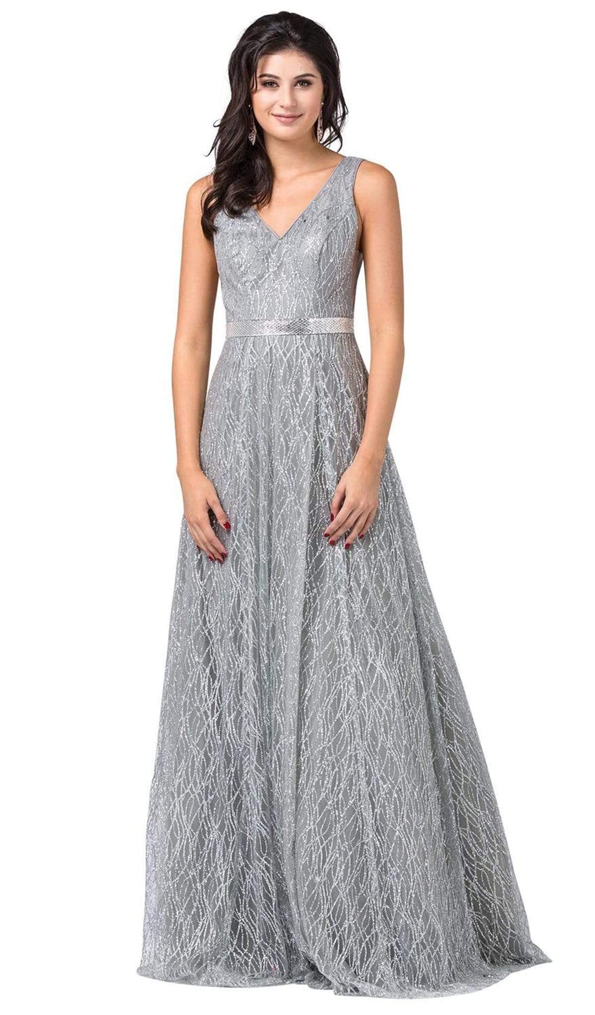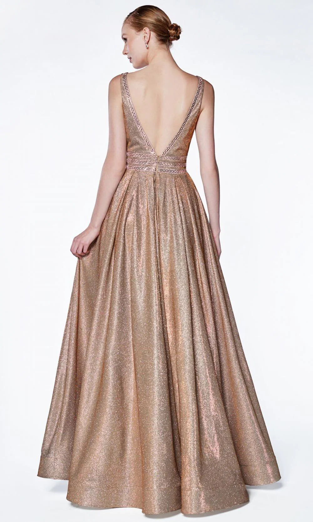 Vestido Largo de Tafetán con Cuello en V de Nox Anabel E156