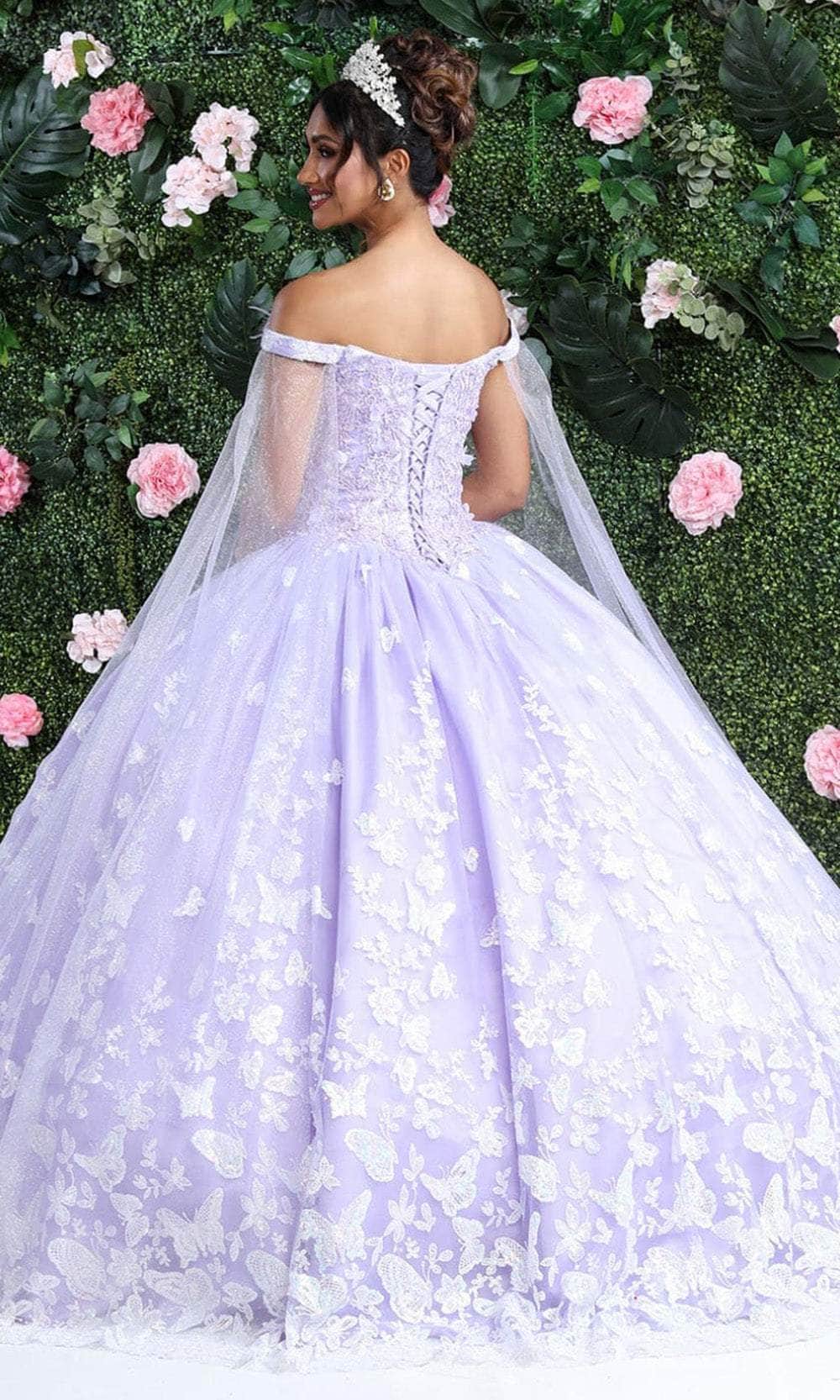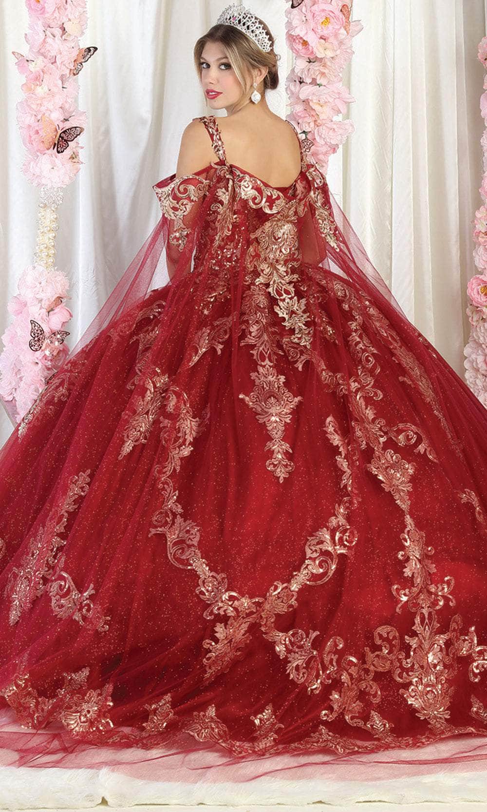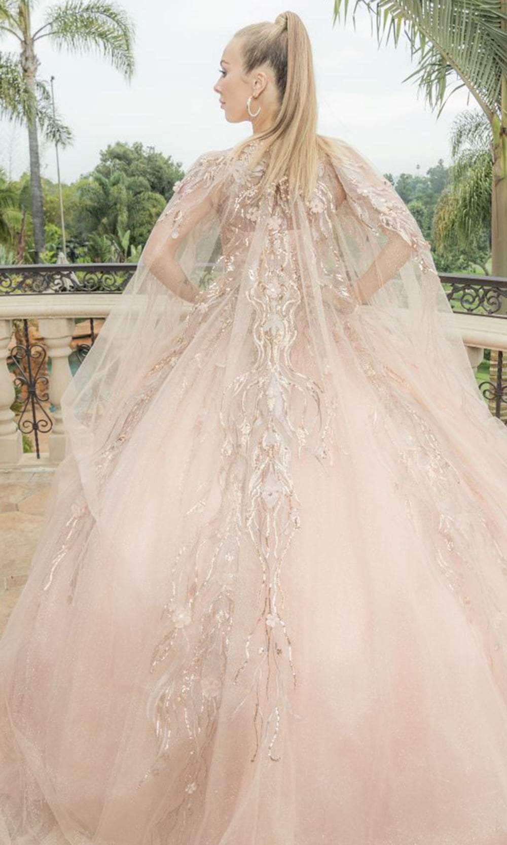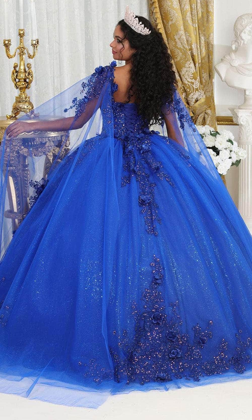 Vestido de quinceañera con mangas de capa y cuentas LK212