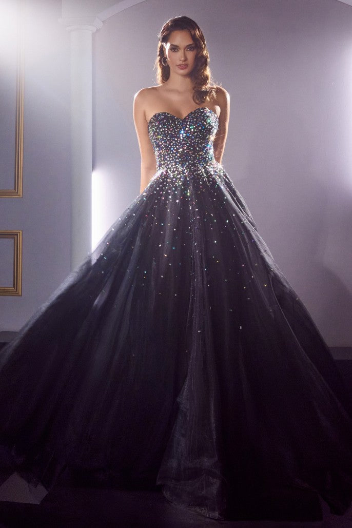 Vestido metálico sin tirantes con pedrería de Ladivine CD756