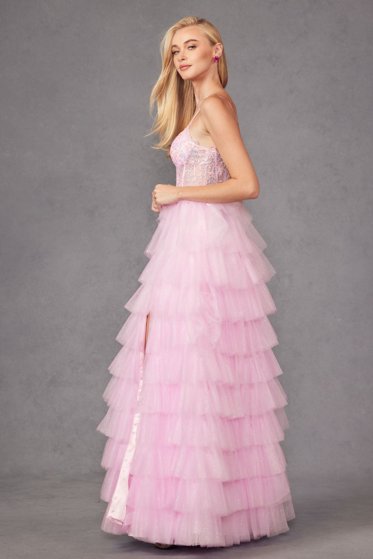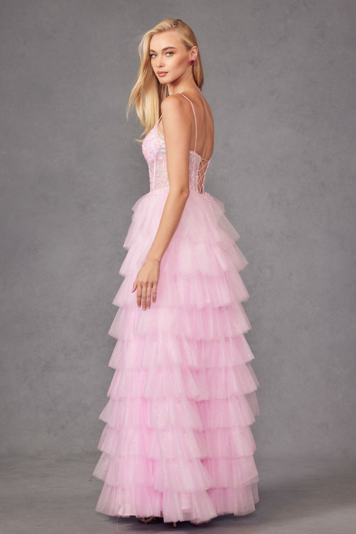 Vestido de Quinceanera con capas y hombros descubiertos de Juliet 1432