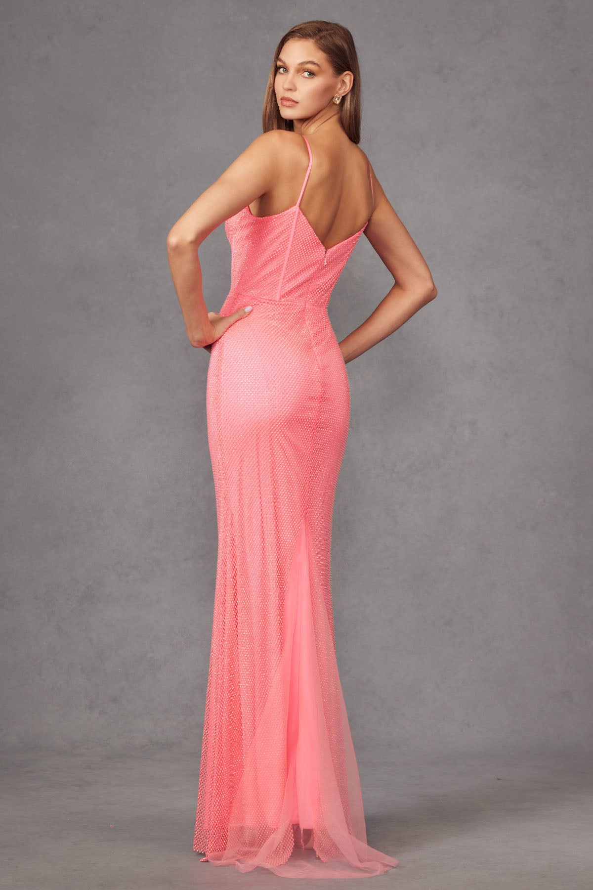 Vestido largo ajustado de tirantes con espalda metalizada de Juliet 242