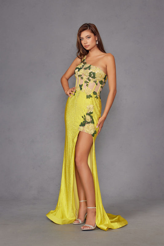 Vestido floral 3D con un hombro de Juliet 298