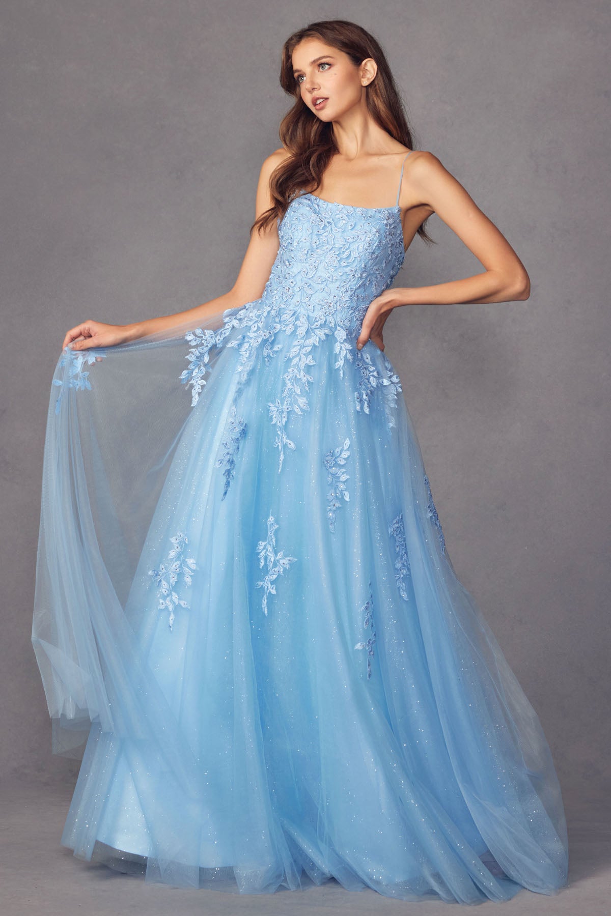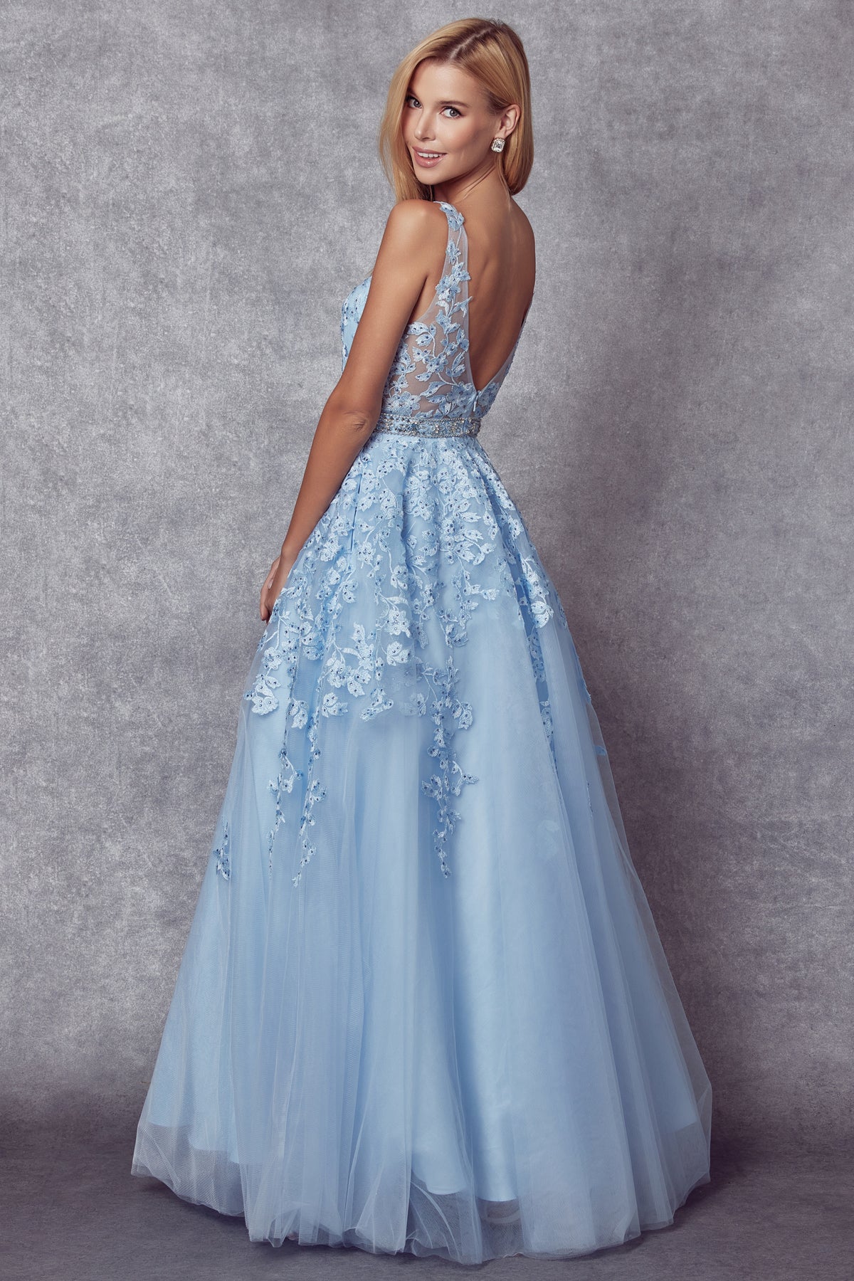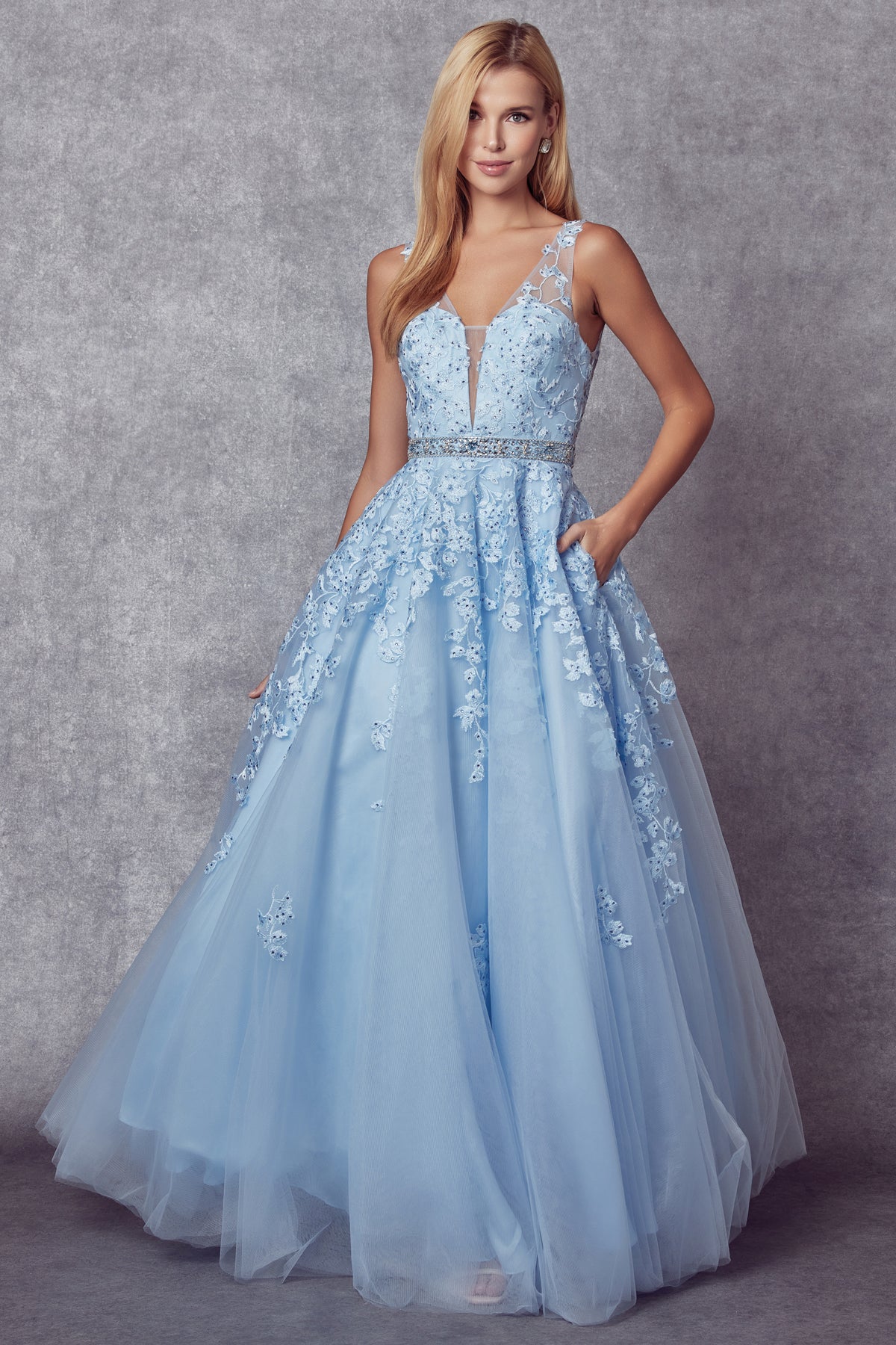 Vestido de tul con apliques florales y cuello en V de Juliet 224W