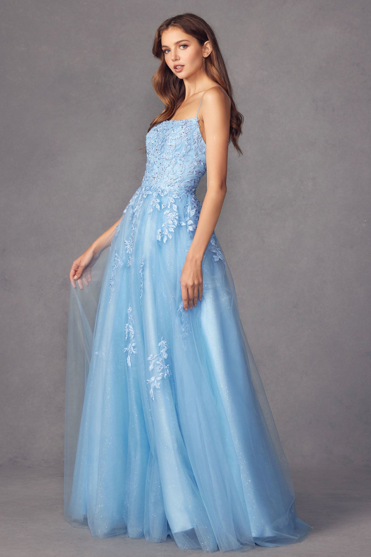 Vestido de tul sin tirantes con espalda de encaje de Juliet 265