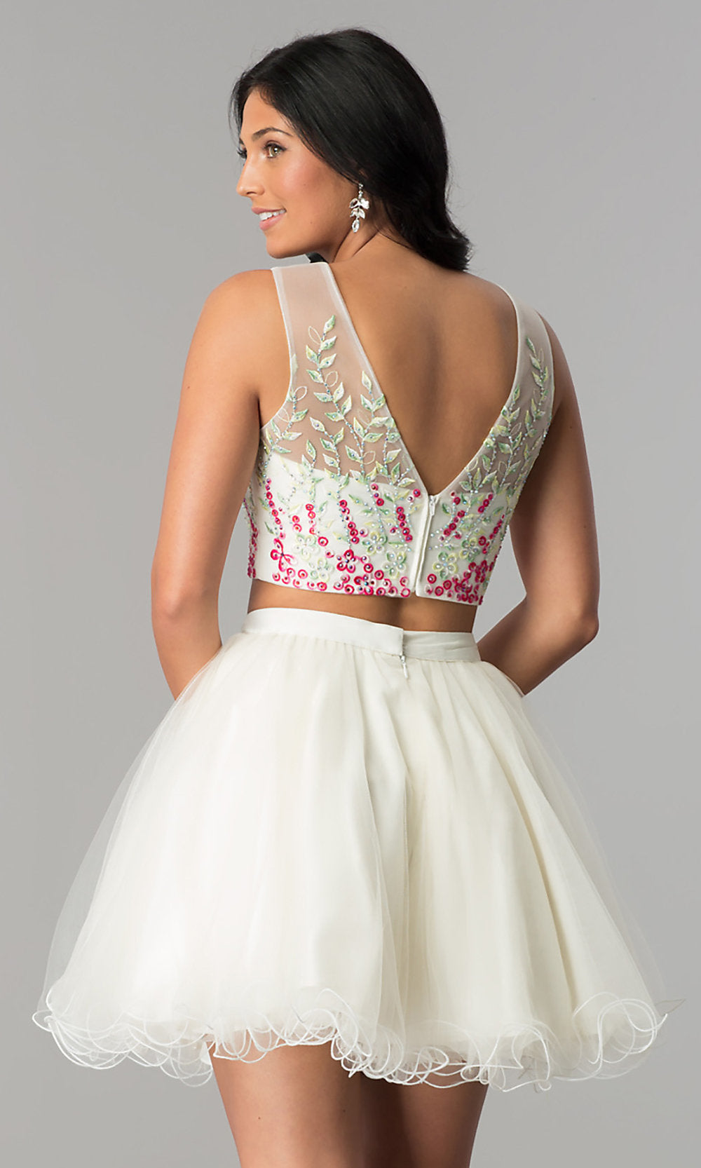 Vestido Corto Cuello en V Profundo Corte-A con Purpurina MQ1702