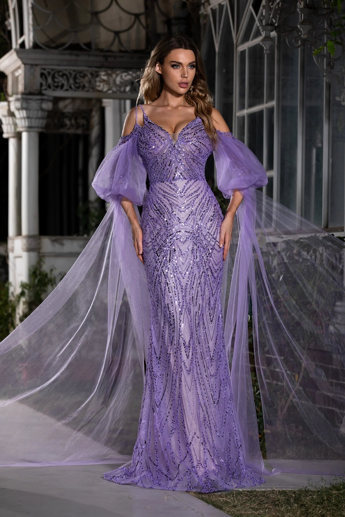 Vestido de lentejuelas con manga CH167W