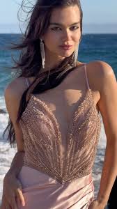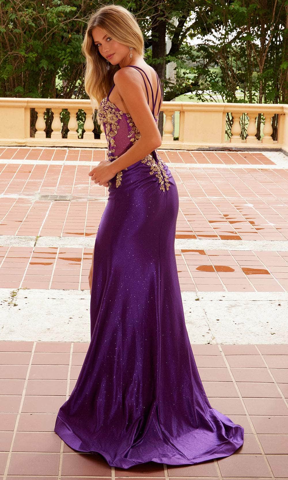 Vestido con abertura y sin mangas con lentejuelas de Amelia Couture 5065