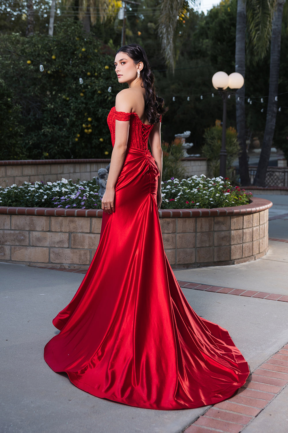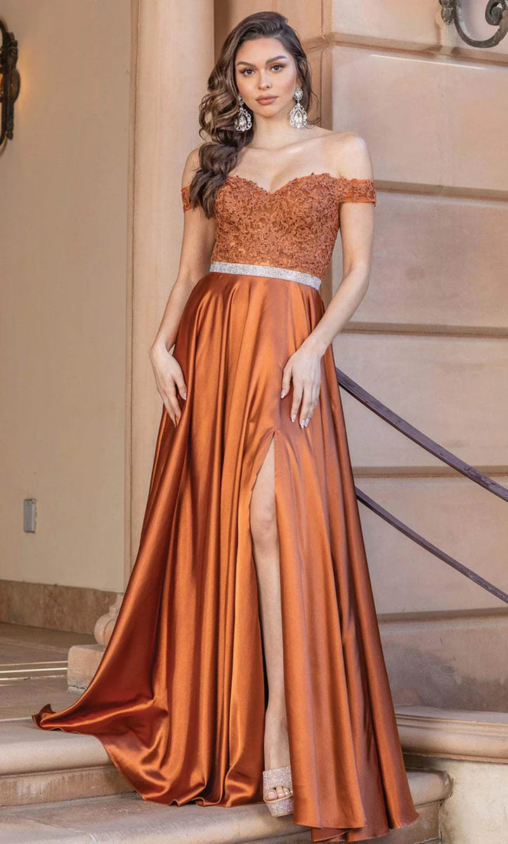 Vestido satinado con hombros descubiertos Dancing Queen 4222A