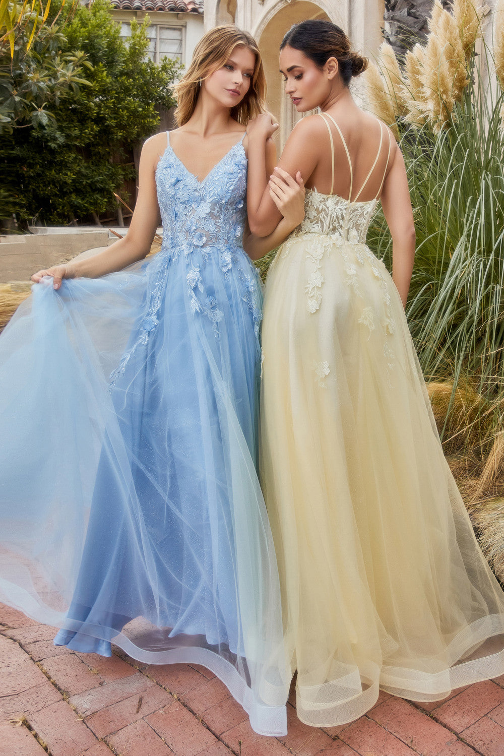 Este impresionante vestido de línea A presenta tirantes finos y un corpiño de encaje con escote en V adornado con apliques florales en 3D. El corpiño está ajustado, mientras que la falda de tul en capas crea una silueta completa y romántica. La forma de línea A del vestido favorece la figura, lo que lo convierte en una opción femenina para cualquier ocasión especial. El delicado encaje y los apliques florales añaden un toque de fantasía y elegancia al diseño general. Ya sea que asista a un baile de graduación, una boda u otro evento formal, este vestido seguramente la hará sentir como la reina del baile.