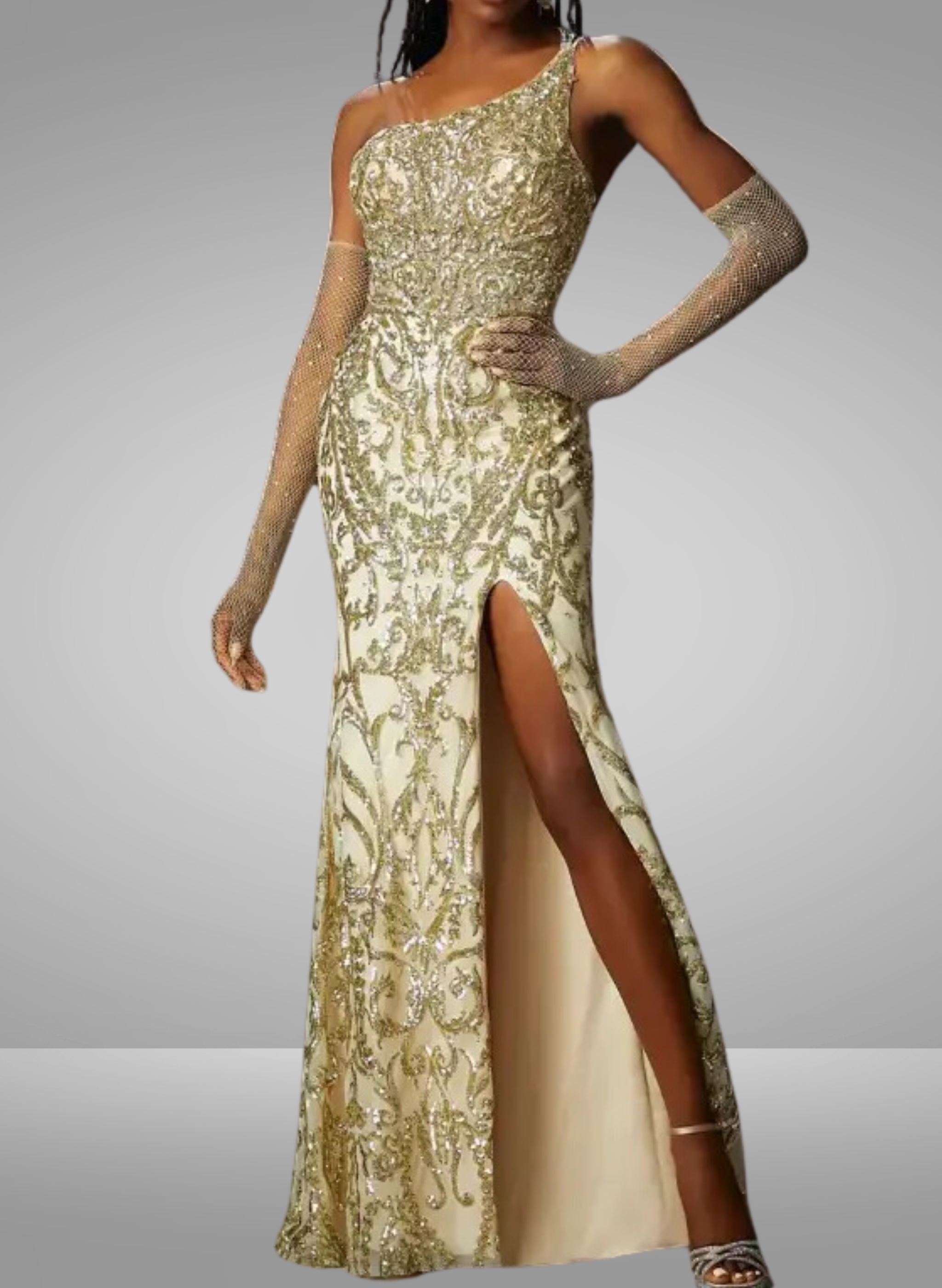 Morilee 47002 Vestido de fiesta de lentejuelas con un hombro