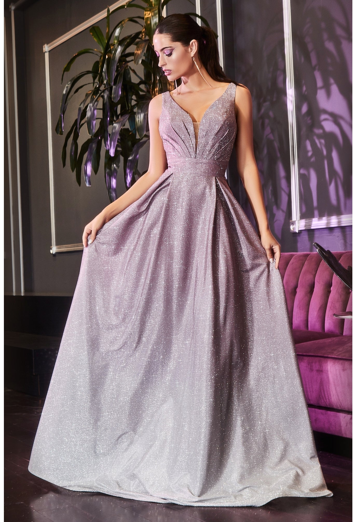 Brilla toda la noche con este vestido de fiesta con purpurina ombre. El escote con pliegues profundos se ve reforzado por las correas que conducen a una espalda con escote medio.