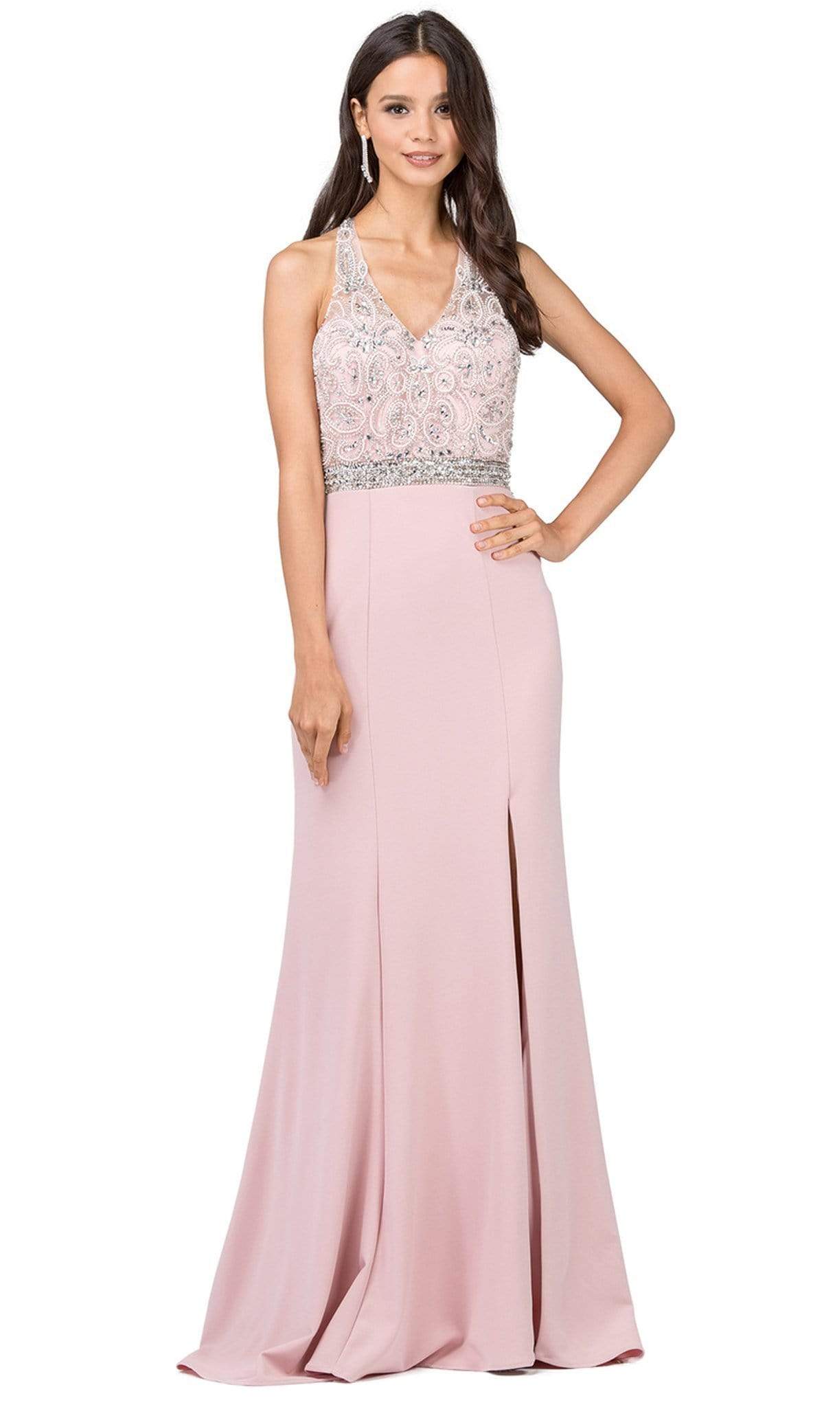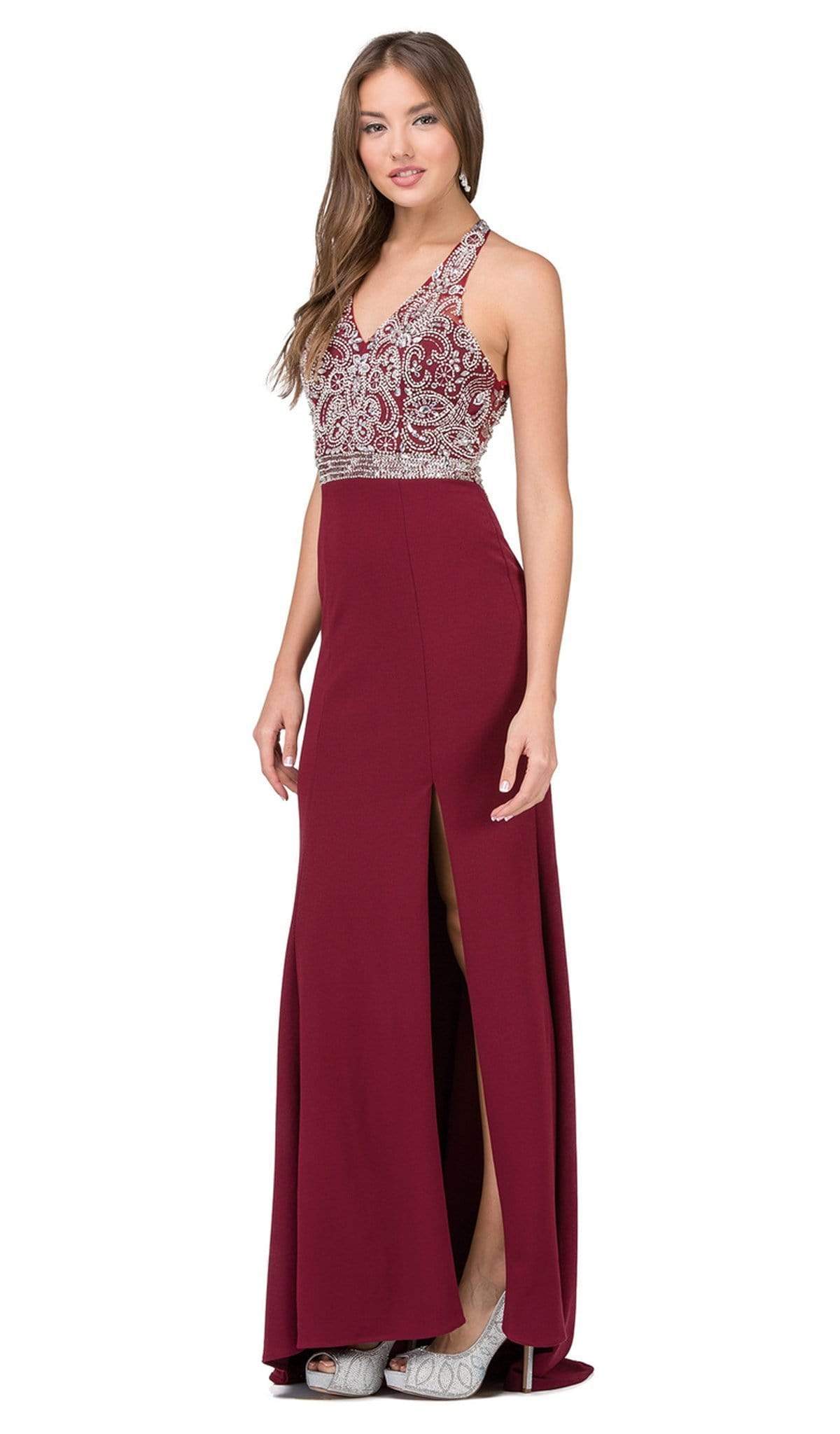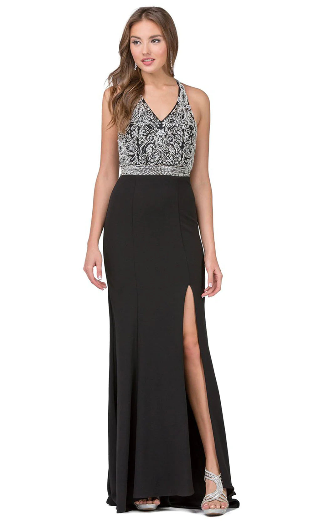 Vestido de fiesta con escote halter y aberturas Dancing Queen 2242