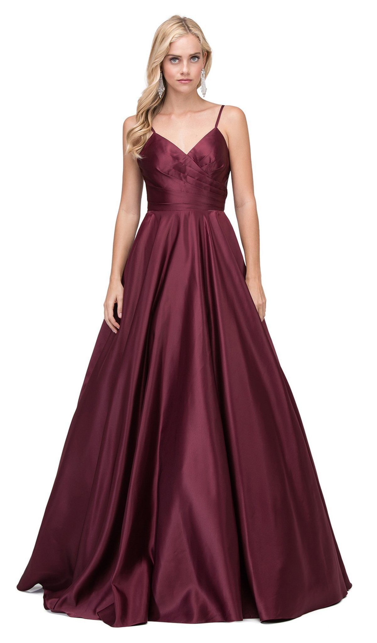 Acapara todas las miradas en el baile de graduación con este magnífico vestido de noche. El corpiño entallado presenta un definido escote corazón con fruncidos cruzados en la cintura. Los tirantes de espagueti sujetan la parte superior que conduce a la parte media abierta de la espalda. Maravillosos pliegues suaves fluyen a la falda, ya que destaca una línea A. La espalda se cierra con una cremallera central. Pasee por la alfombra roja con estilo luciendo este exquisito vestido de noche. Las modelos llevan los colores Wine y Dusty Pink. Encuentra más vestidos de fiesta elegantes.