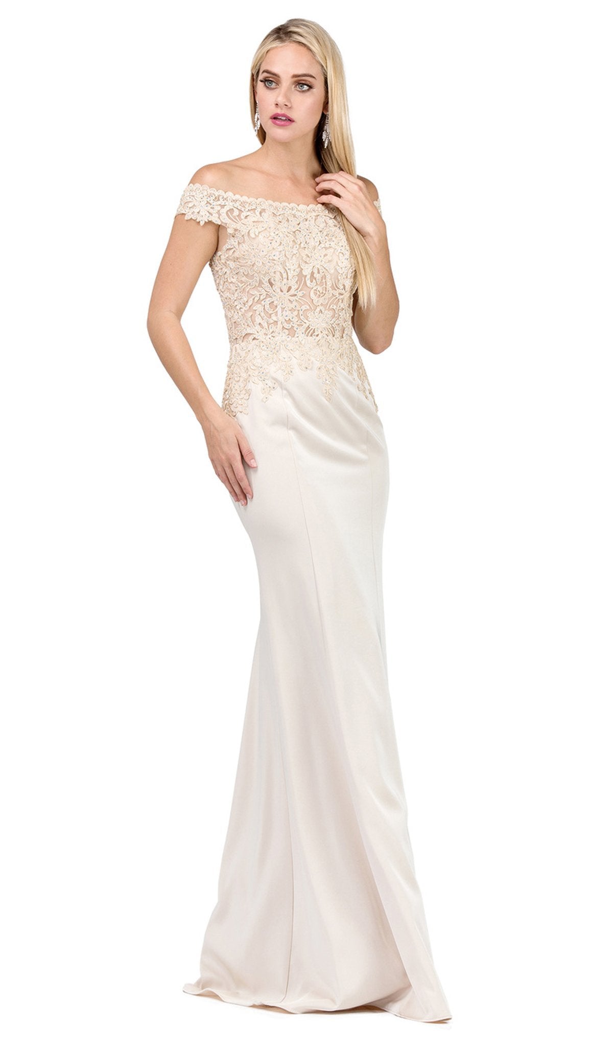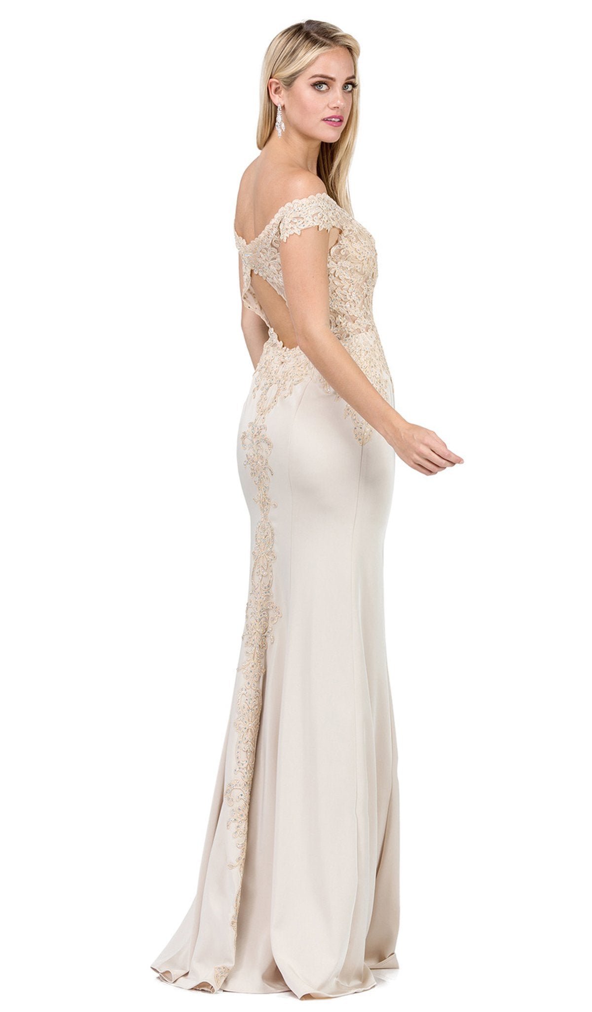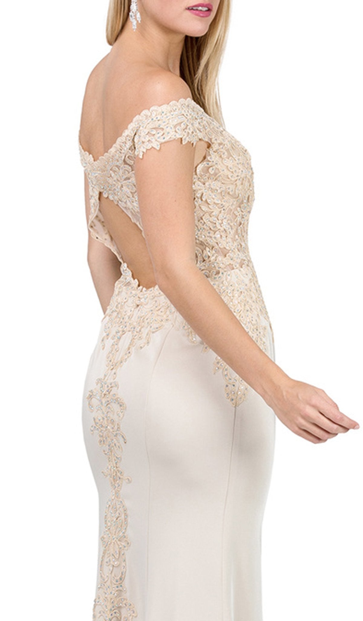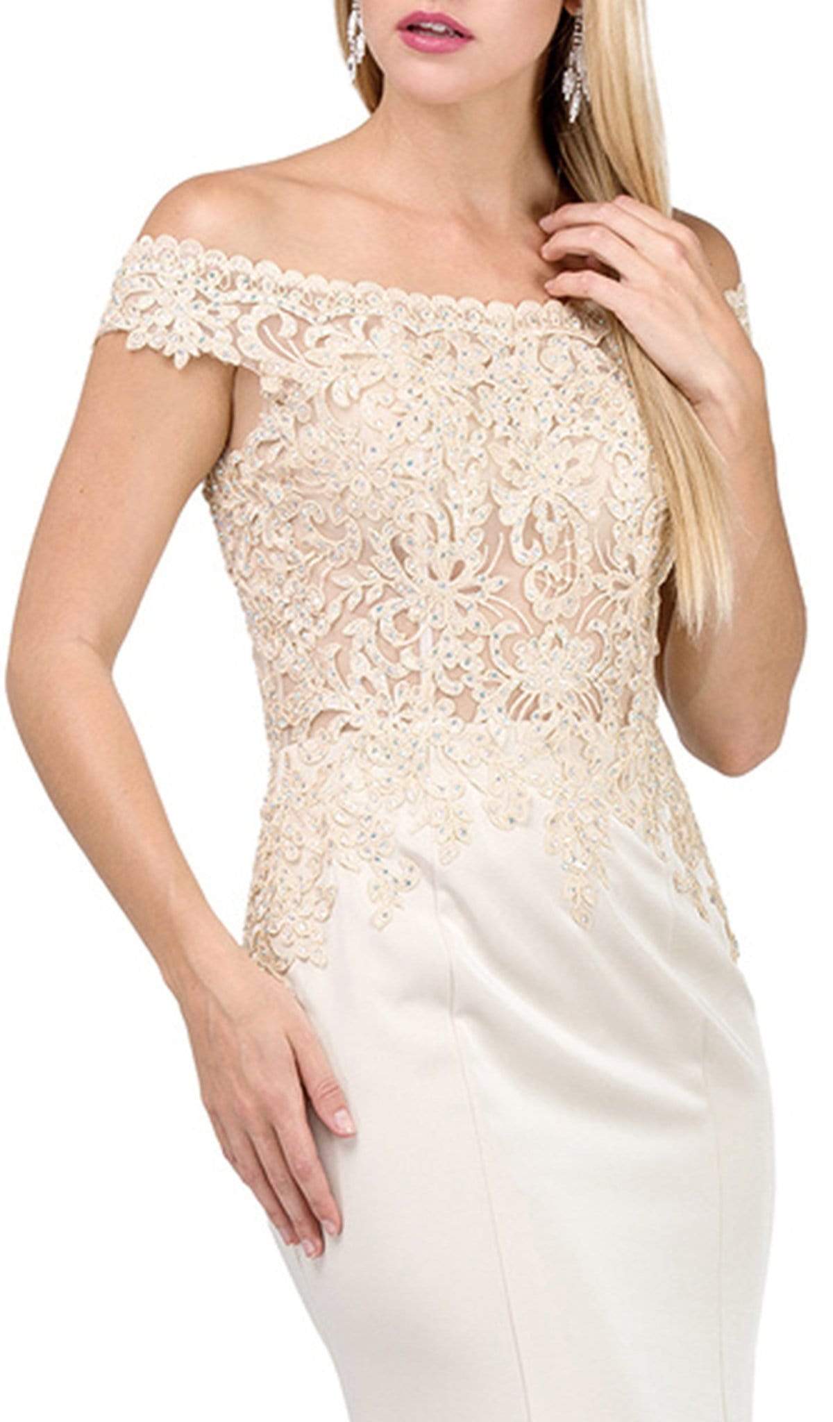 Vestido de fiesta con hombros descubiertos e ilusión adornada Dancing Queen 2440