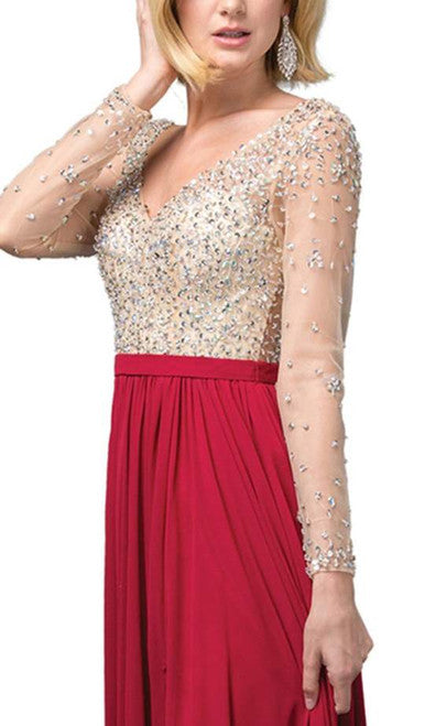 Vestido Manga Larga Cuello en V Adornado con Cuentas Dancing Queen 2839
