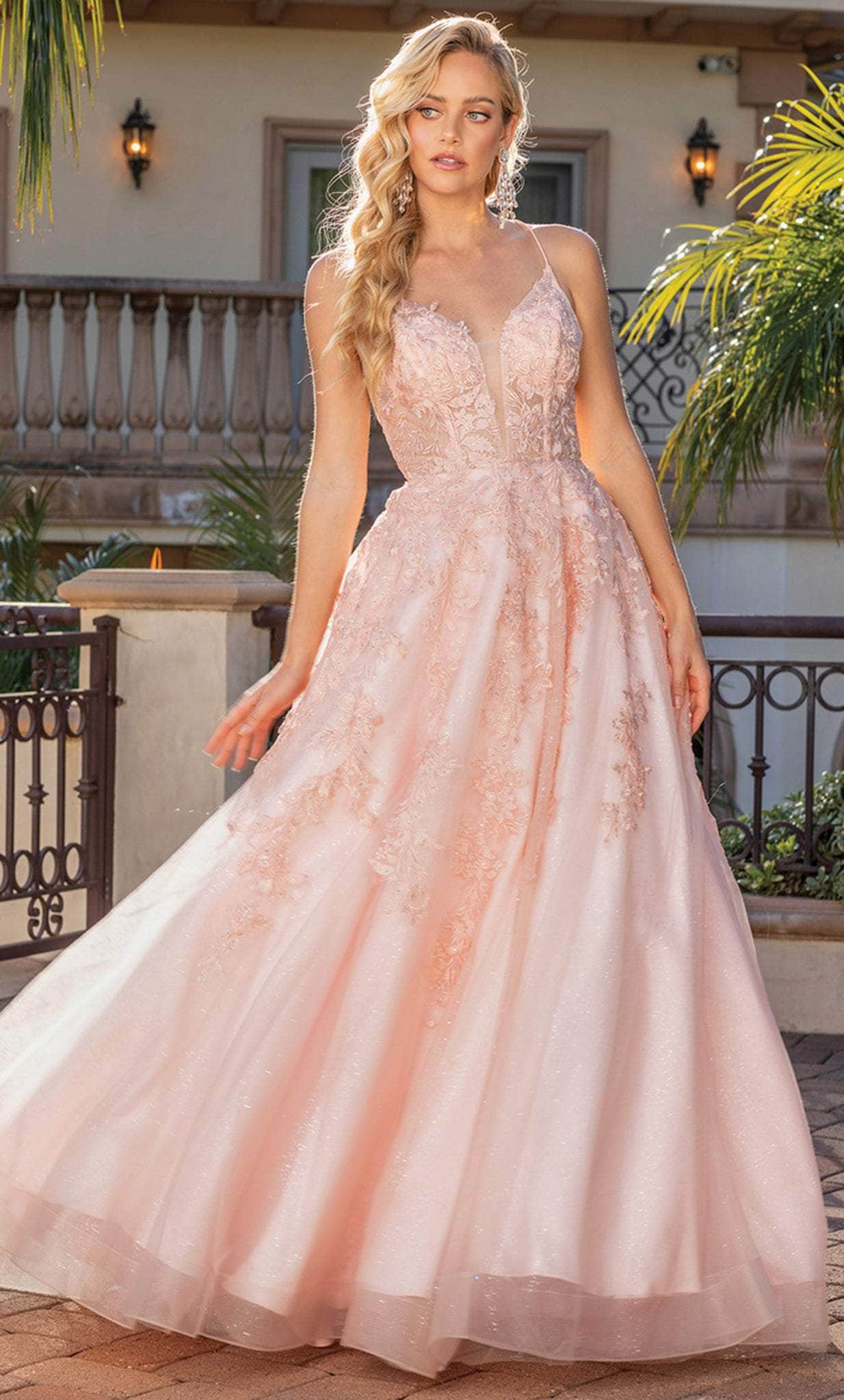 El estilo tradicional adquiere un toque glamuroso en una sofisticada pieza de Dancing Queen 4231. La espalda del vestido es abierta y presenta un diseño entrecruzado con cordones, mientras que el corpiño tiene un escote en V y tirantes finos. La falda llega hasta el suelo y sigue cayendo en cascada. El vestido de línea A lleva aplicaciones florales de pedrería hasta las rodillas. Enamórate cuando te pongas este vestido Dancing Queen 4231. Las modelos llevan los colores Bahama Blue y Blush.