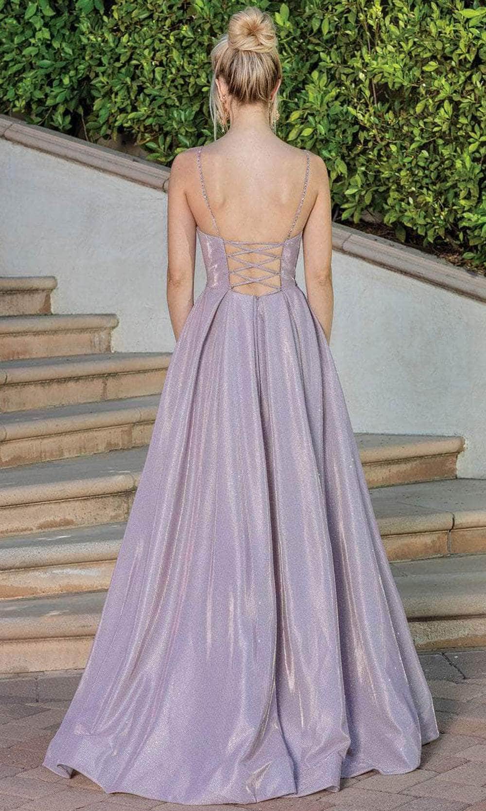 Camina con glamour y deja que todas las cabezas se giren hacia ti en esta creación de Dancing Queen 4259. Hecho a mano en una tela brillante, esta hermosa pieza aturde en un escote en V con diseño de envoltura de imitación y detalles fruncidos en el lateral. Sujetado por tirantes de espagueti que atraviesan continuamente a una espalda abierta creando un encaje entrecruzado hasta el diseño de lazo con cierre de cremallera. cintura adornada cintura, ya que corona la falda y arroyos en un dobladillo hasta el suelo con una abertura alta. Esta reina de la danza es seguro que será a la vez cómodo y de moda. modelos están usando el oro rosa, oro y azul colores.