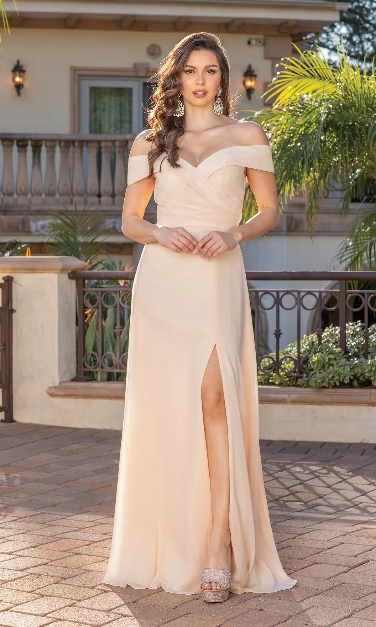 Emana sofisticación en esta fascinante creación Dancing Queen 4289. Diseñado y esculpido con líneas de sastrería en un corpiño envolvente de imitación, esta belleza muestra un escote fuera del hombro con un acento foldover. Diseñado con un estilo midrise espalda y un cierre de cremallera, la falda de línea A revela una abertura sexy, ya que bellamente cascadas en un desenlace de barrido. Resalta un estilo sofisticado en tu impresionante velada con esta obra maestra de Dancing Queen. Las modelos llevan los colores Blush, Hunter Green, Plum y Red.