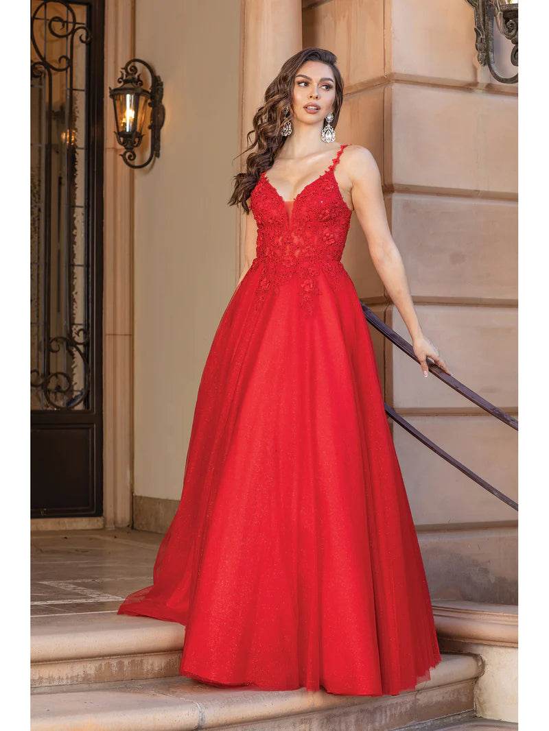 Vístete para impresionar en tu próximo evento formal con este sencillo pero cautivador Dancing Queen 4328. Entra en la sala con gracia y belleza en este vestido de línea A con un escote en V, tirantes finos y una espalda abierta. Además, está diseñado con motivos florales de encaje y una cremallera en la espalda para abrocharlo. La falda con paneles llega hasta el suelo con un tejido de tul brillante. Este Dancing Queen 4328 es una elección excepcional para el baile de graduación, ya que es fácil de bailar y te hace parecer una princesa. Los modelos llevan Hunter Green. Rojo y Azul Real.