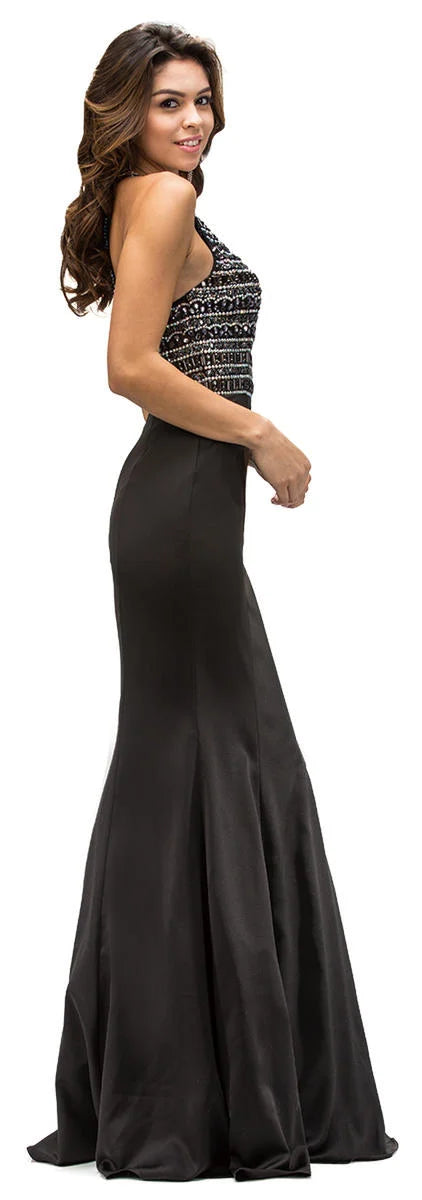Los vestidos halter con pedrería son preciosos y siempre están de moda. Con hermosas opciones de color y mucho brillo, ¿a qué diva de la moda no le gustaría este impresionante vestido? Este vestido largo con escote halter es exquisito y cuenta con un corpiño adornado con brillantes cristales radiantes. El corte ajustado y acampanado le da a tu cuerpo esas elegantes curvas para un look más sexy.