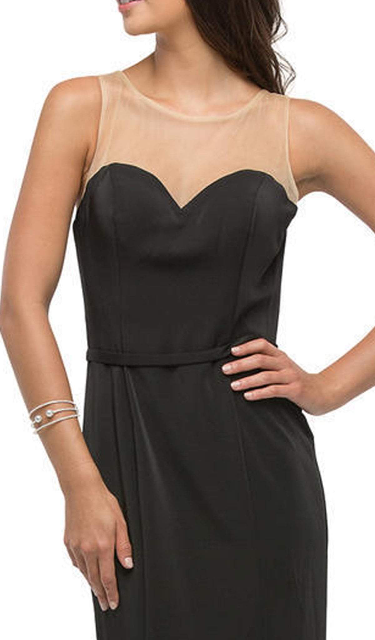 Vístete para impresionar con este exquisito vestido de sirena. Este vestido largo de fiesta le da el aspecto de un corpiño sin tirantes, pero la comodidad de un escote corazón ilusión sin mangas. El suave vestido de punto se ciñe al cuerpo y se alarga suavemente hasta el suelo, proporcionándole una elegante silueta de sirena. Siéntete segura de ti misma con este precioso vestido.
