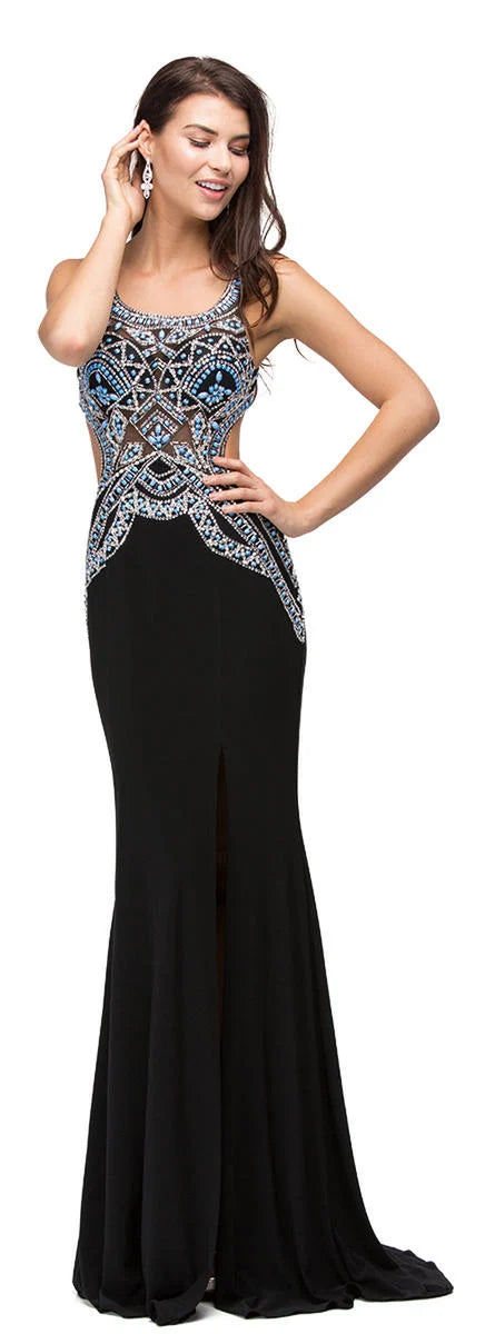 Usted será el centro de atención en el baile de graduación con este vestido impresionante. Hermosas cuentas adornan el corpiño de este vestido de fiesta largo con cuello redondo. Este vestido es ideal para una reunión de alfombra roja.
