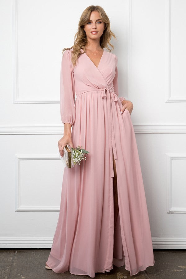 Vestido de gasa con manga globo, abertura frontal y bolsillos EVA 3410