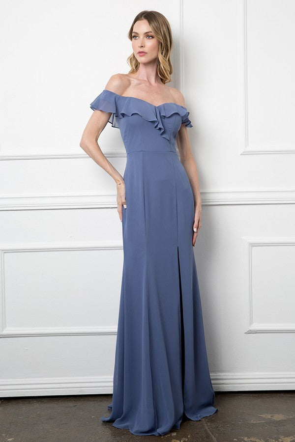 Vestido de gasa con volantes en los hombros y abertura frontal EVA 3438