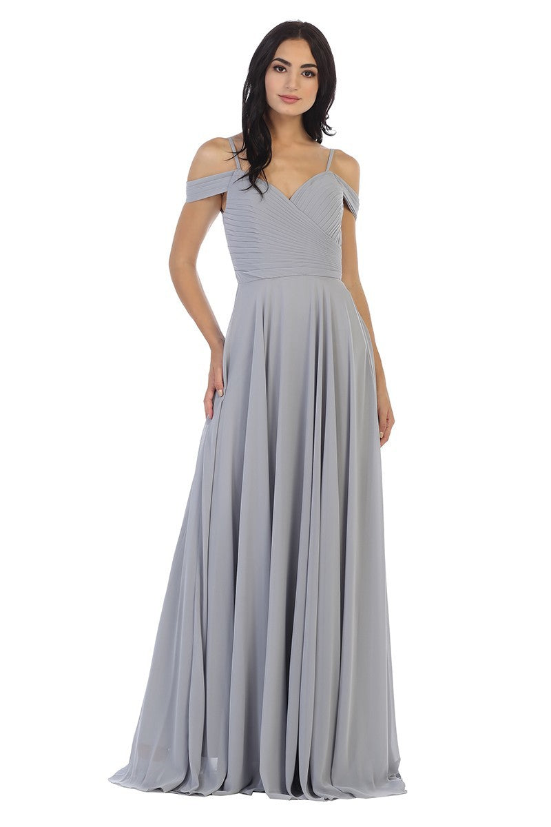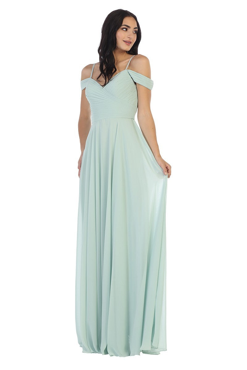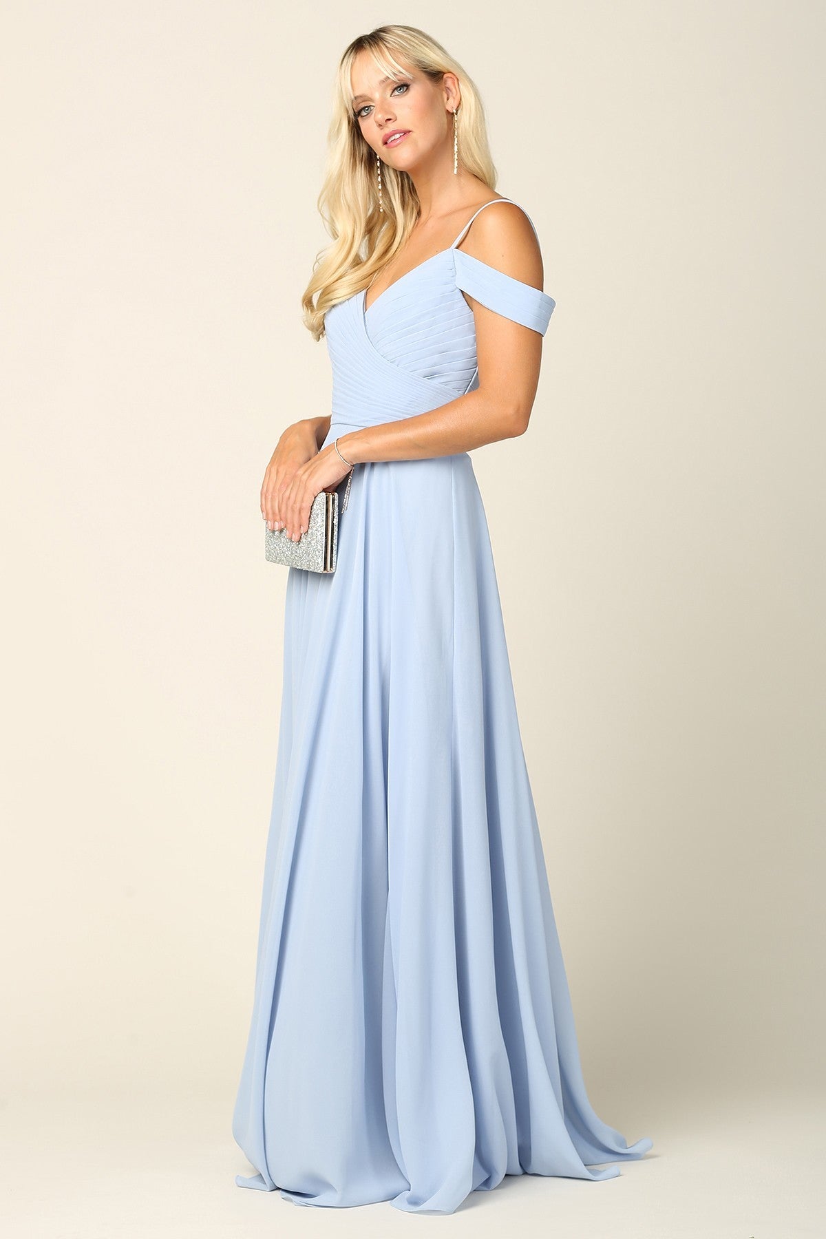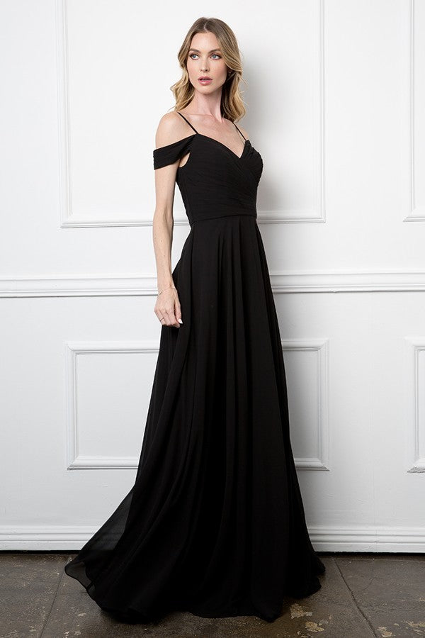 Vestido de línea A de gasa con hombros descubiertos y detalles plisados en el corpiño EVA 5183