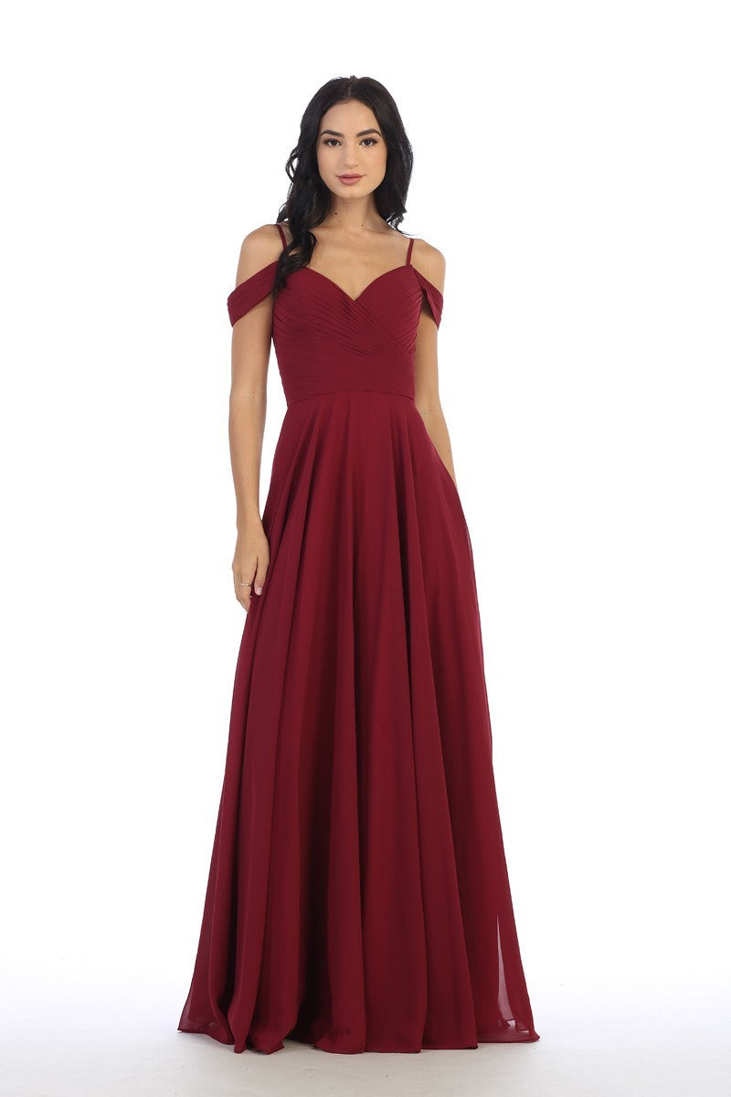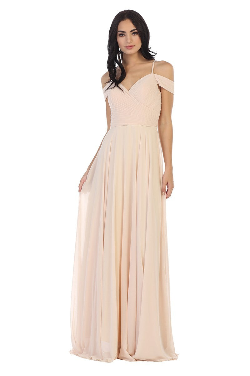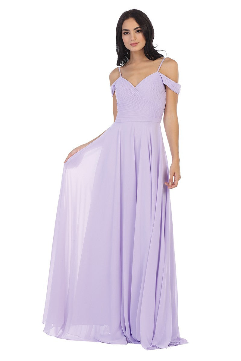 Vestido de línea A de gasa con hombros descubiertos y detalles plisados en el corpiño EVA 5183