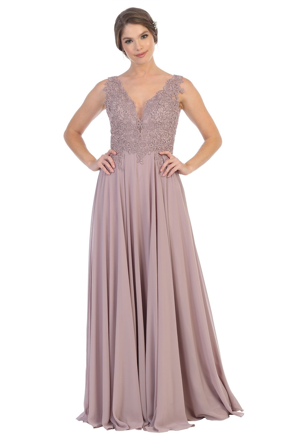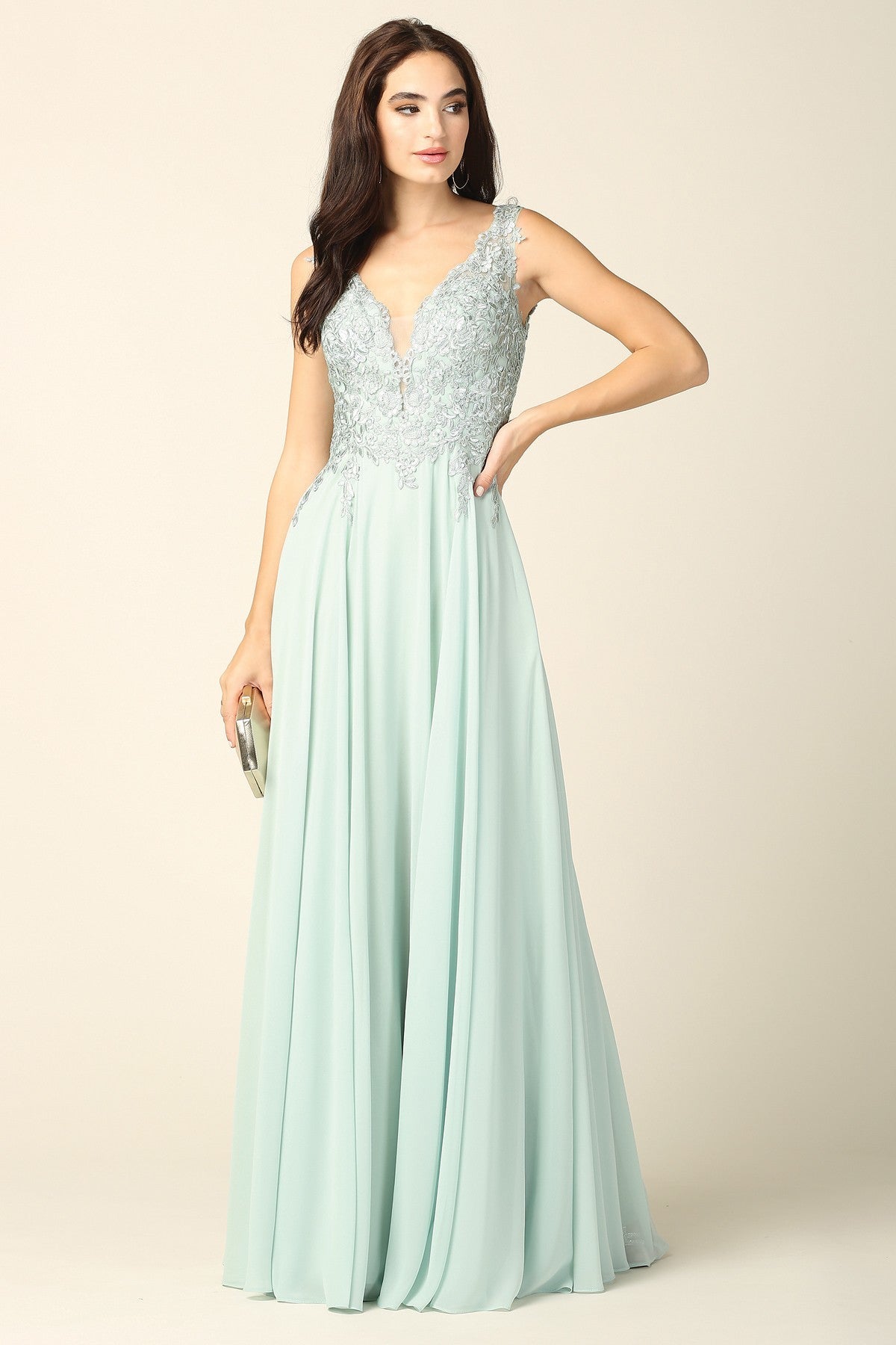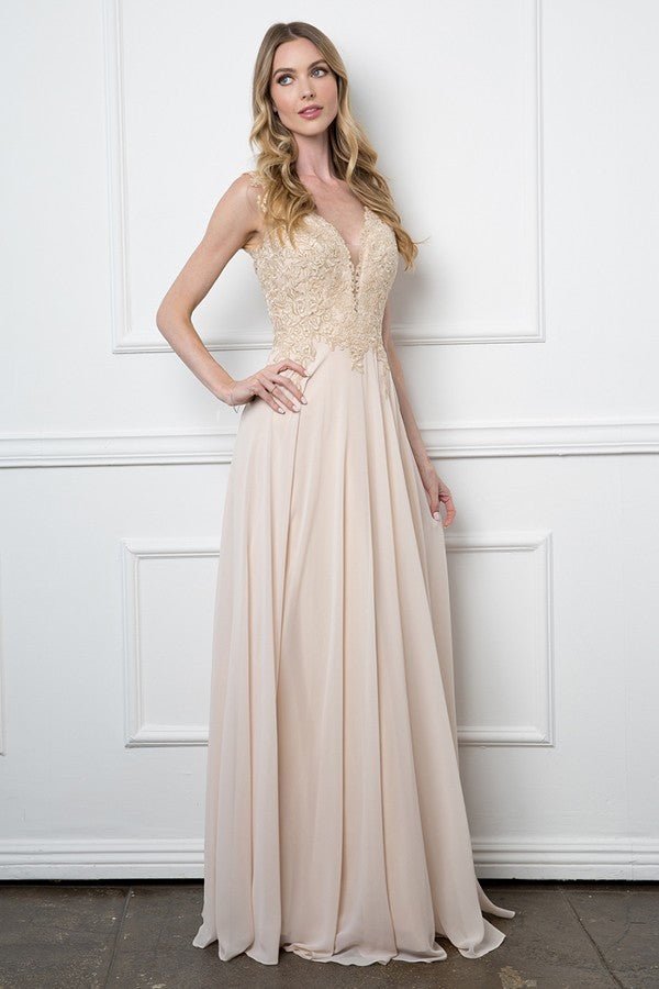 Vestido de gasa sin mangas con apliques monocromos en el corpiño EVA 5201
