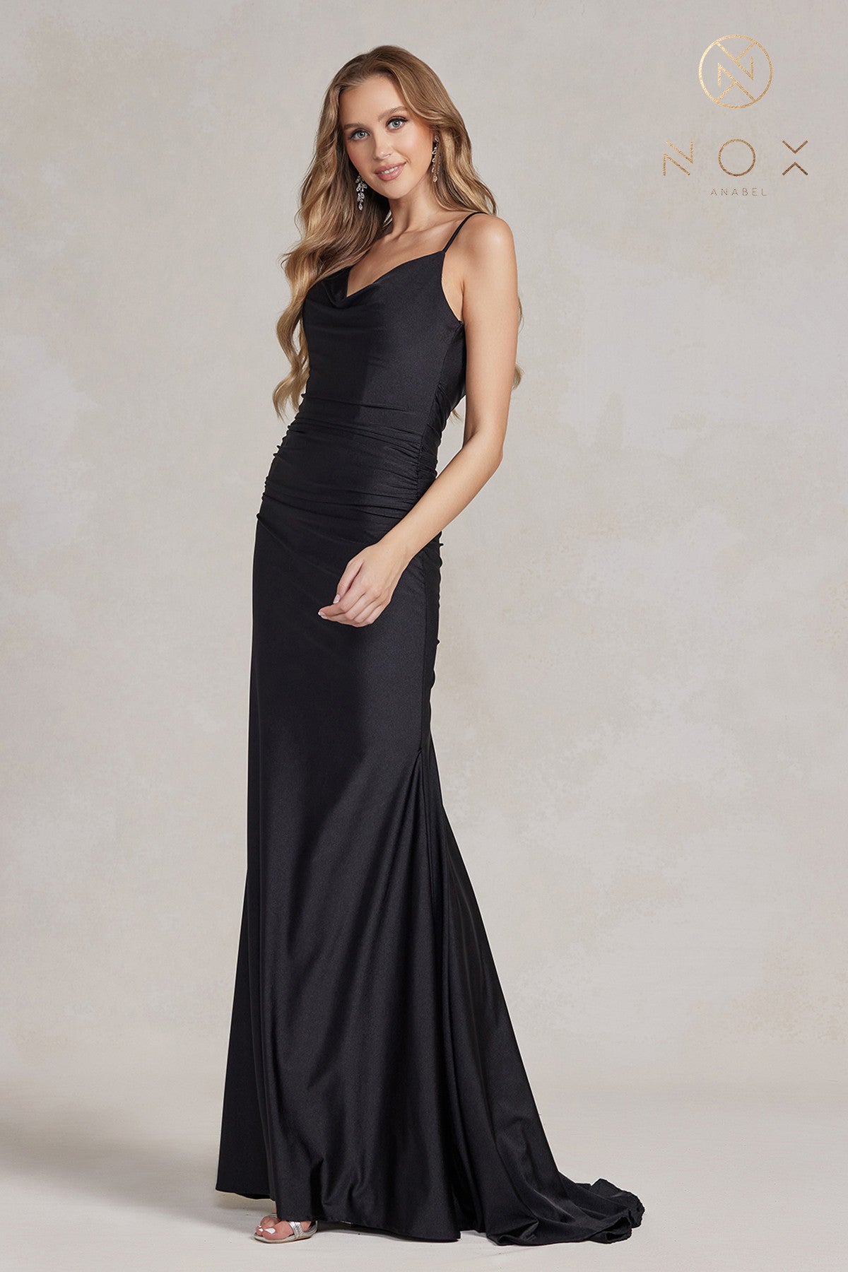 Hazte un selfie con este vestido largo sin mangas de cuello redondo y falda sirena de Nox Anabel K490.