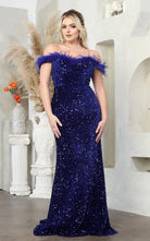 Abrace un vestido de exquisita belleza de May Queen RQ7992. Ricamente decorado con brillantes lentejuelas y abalorios, este vestido deslumbrará a todo el que lo vea. El escote corazón sin hombros está acentuado con delicadas plumas que aportan un toque juguetón y un estilo encantador. La falda, que fluye con gracia hasta el dobladillo de cuerpo entero y la grandiosa cola de barrido, ofrece una silueta de vaina que complementa su corpiño ceñido a las curvas. Haga su debut en una alfombra roja luciendo esta creación de May Queen RQ7992. Las modelos llevan el color Negro, y Azul Real.