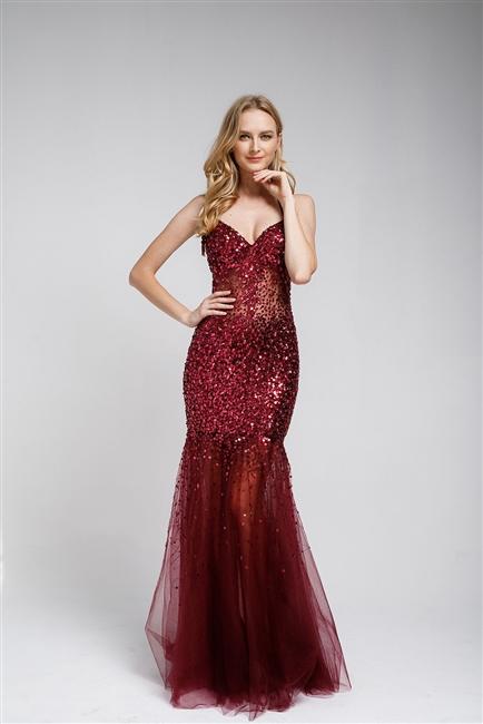 Amelia Couture 3018 - Vestido de Sirena con Cuello en V