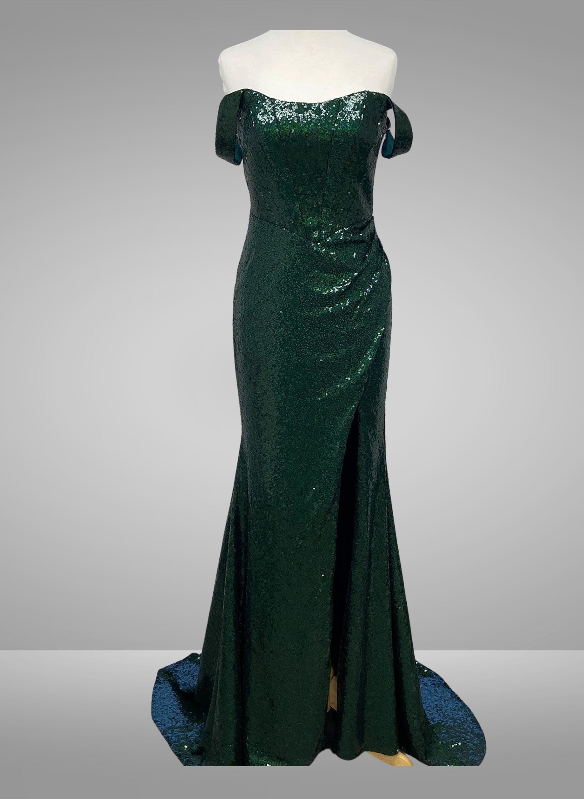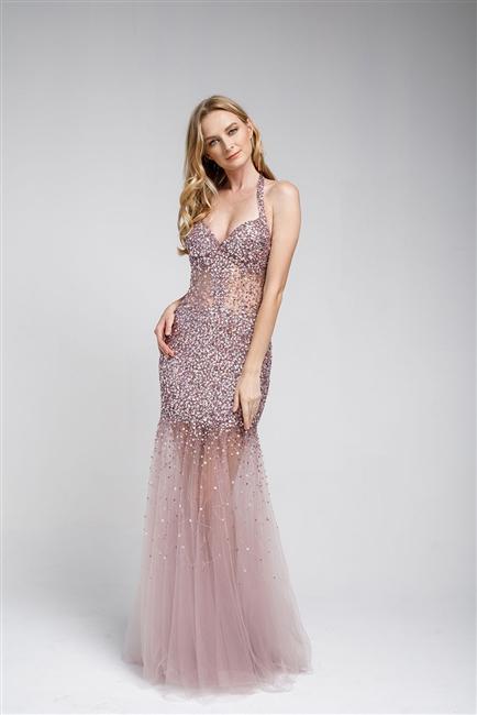 Amelia Couture 3042 - Vestido con aberturas sin tirantes y cuentas