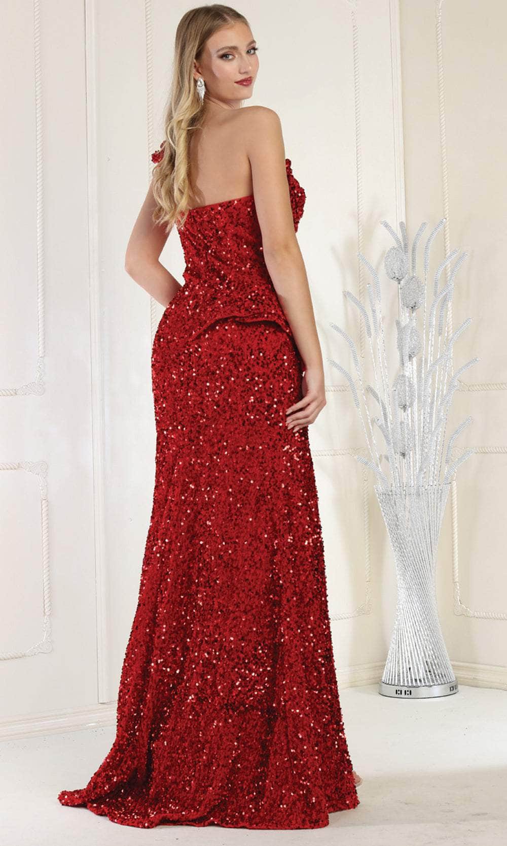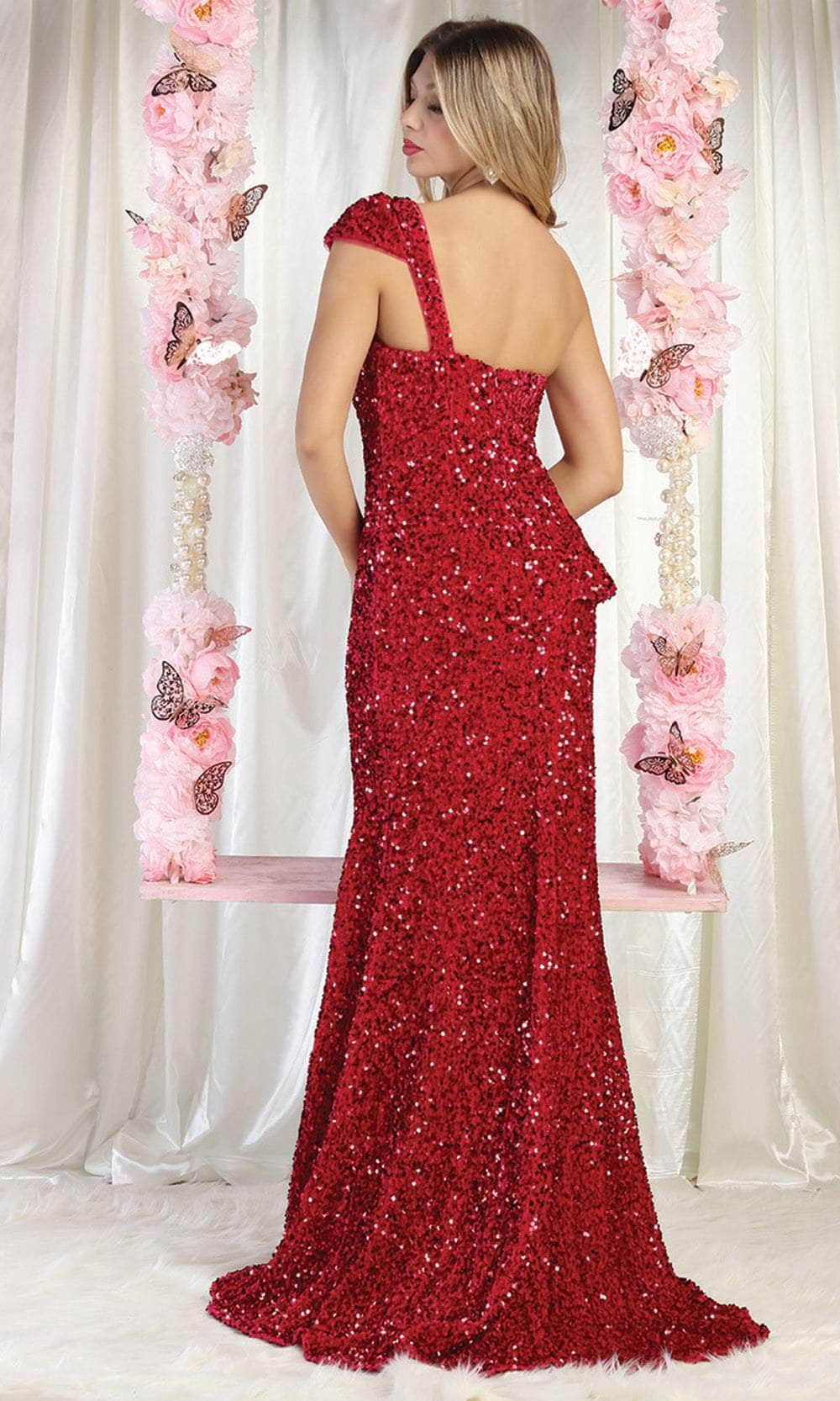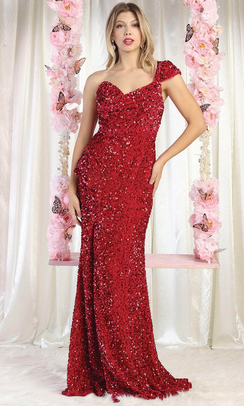 Ladivine J869 - Vestido de novia de un hombro con abertura y corsé estampado con purpurina