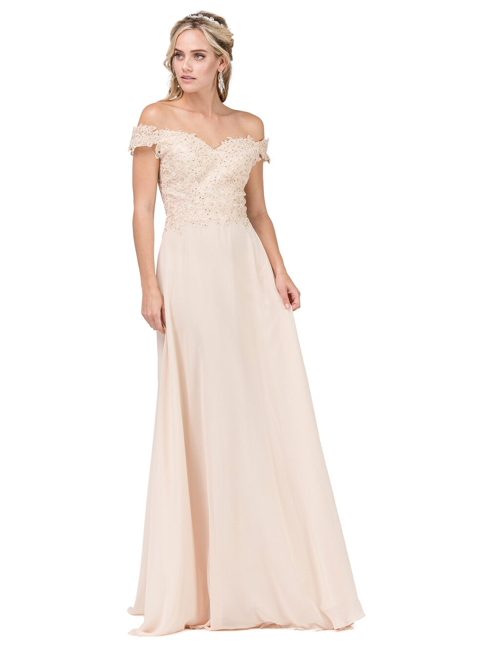 Vestido bordado con hombros descubiertos en línea A Dancing Queen 2538