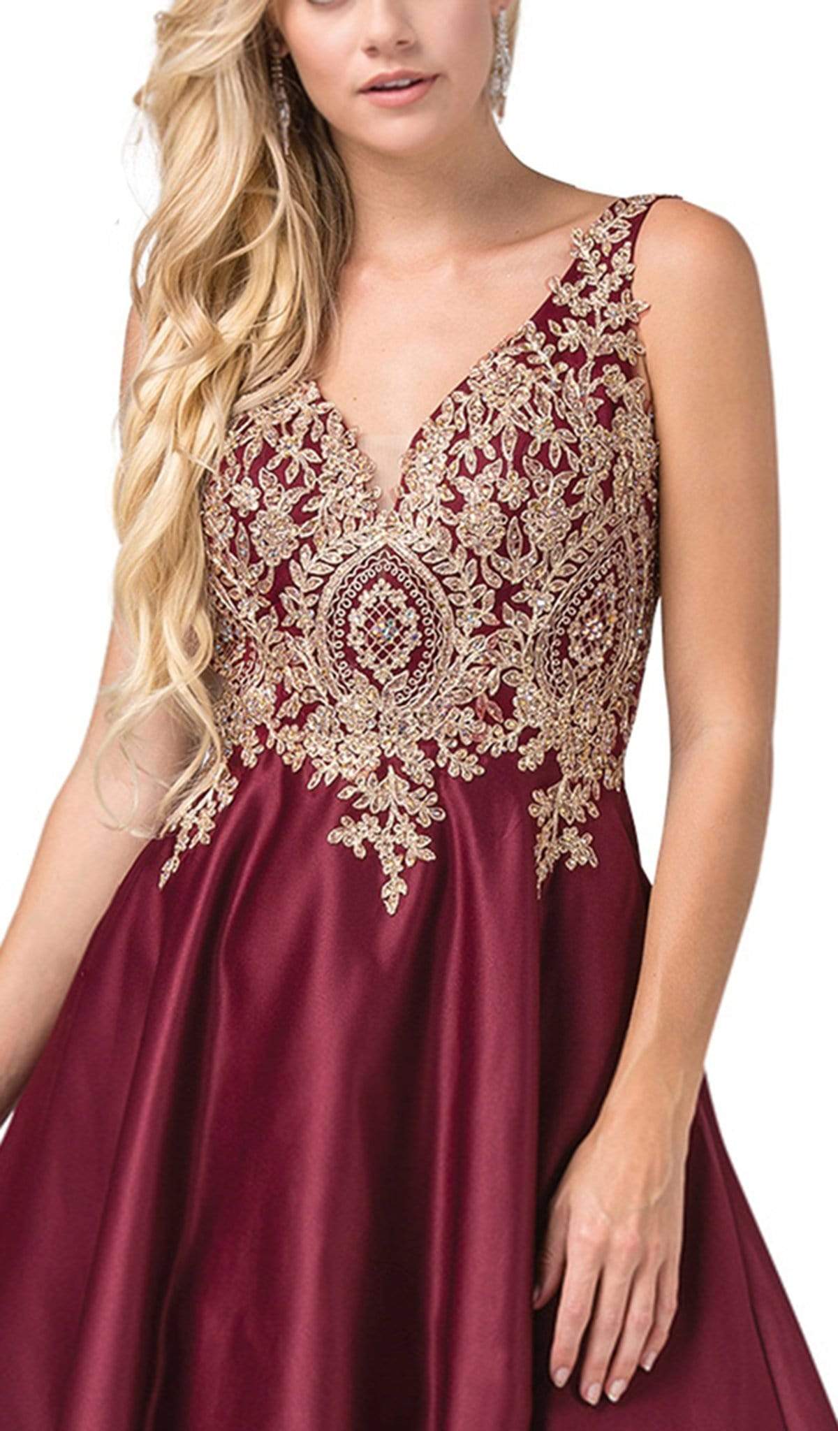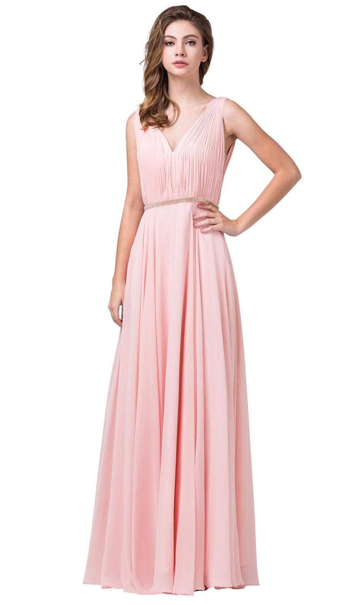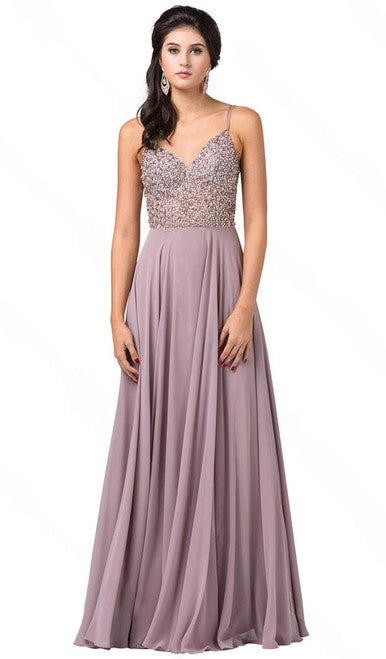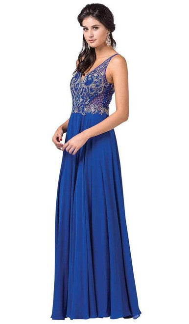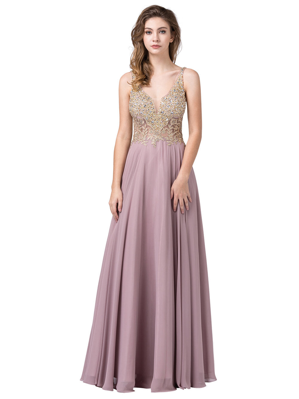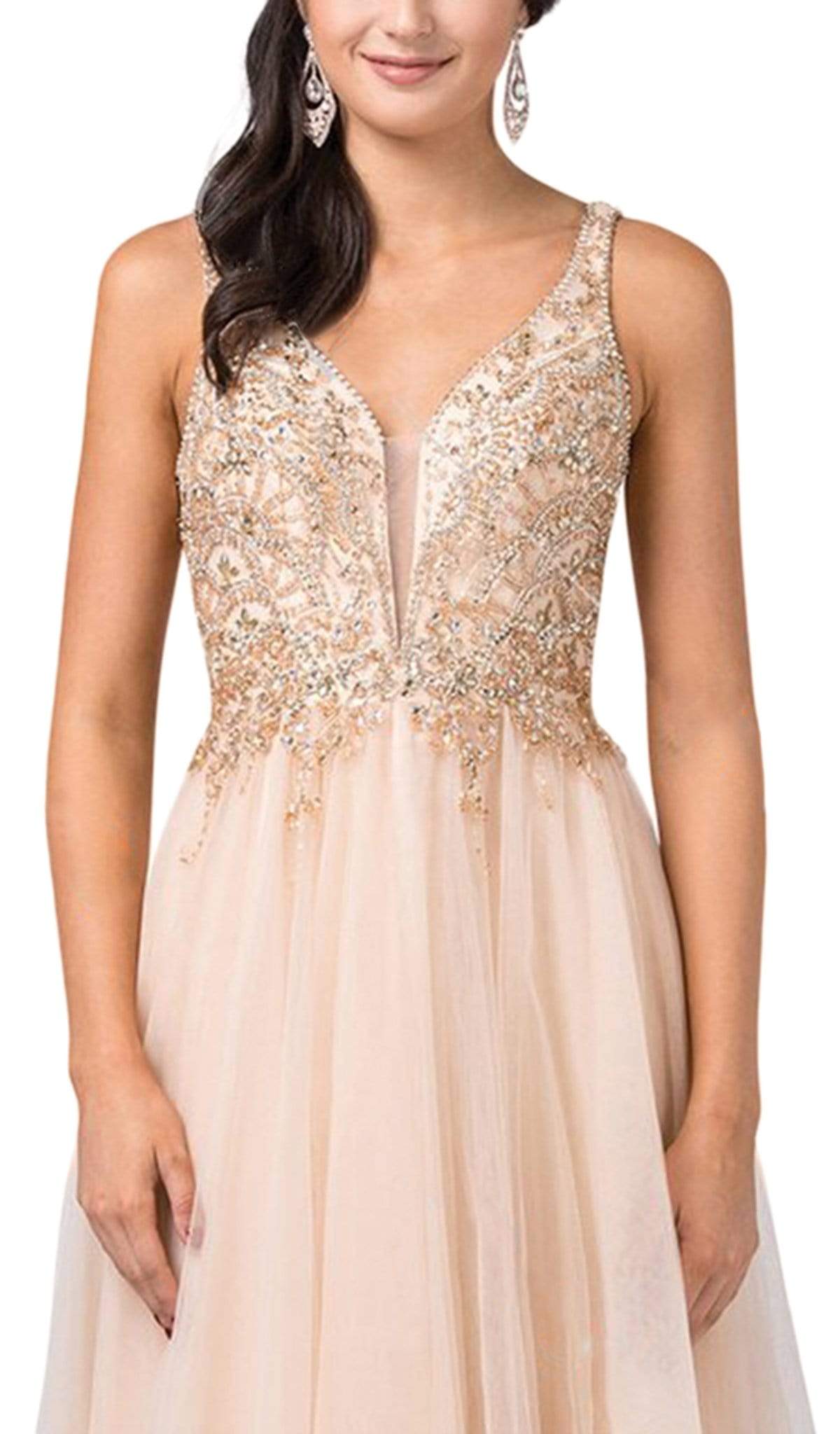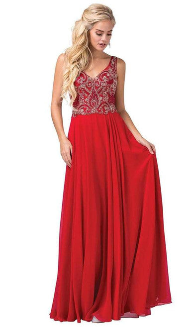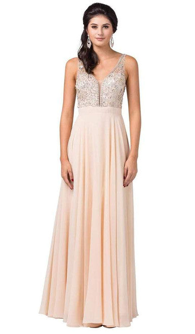 Vestido sin mangas con escote en V y pedrería Dancing Queen 2669
