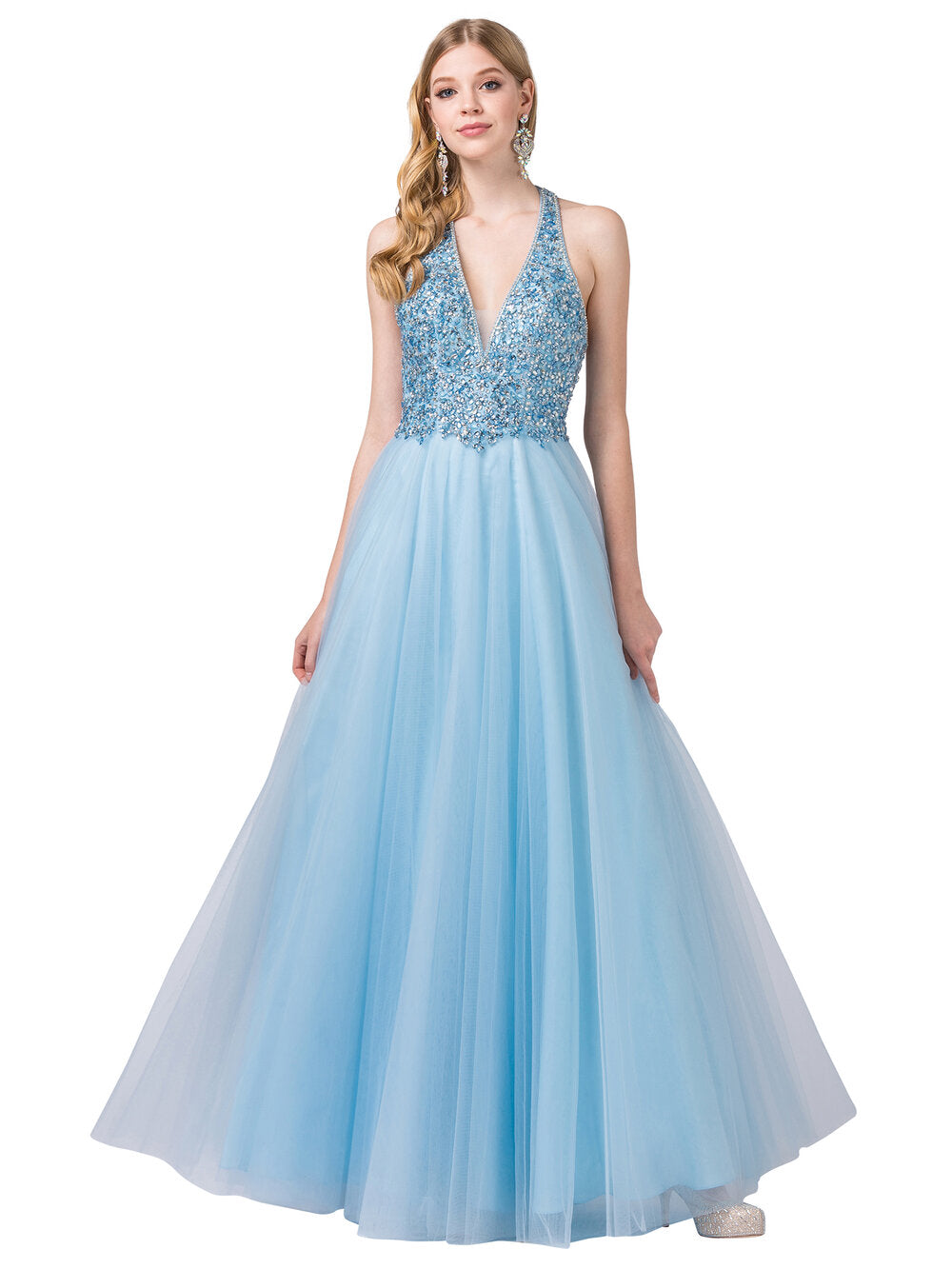 Vestido largo halter sin mangas con adornos Dancing Queen 2518