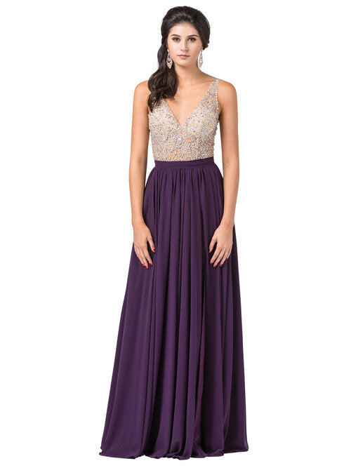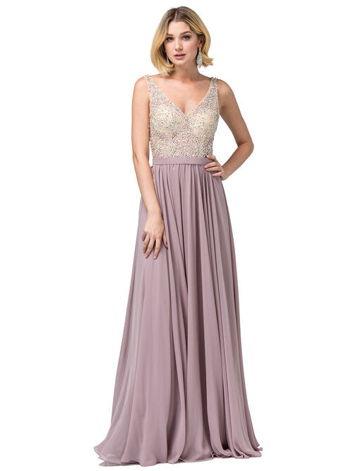 Vestido Largo Sin Mangas Cuello en V Adornado Dancing Queen 2647