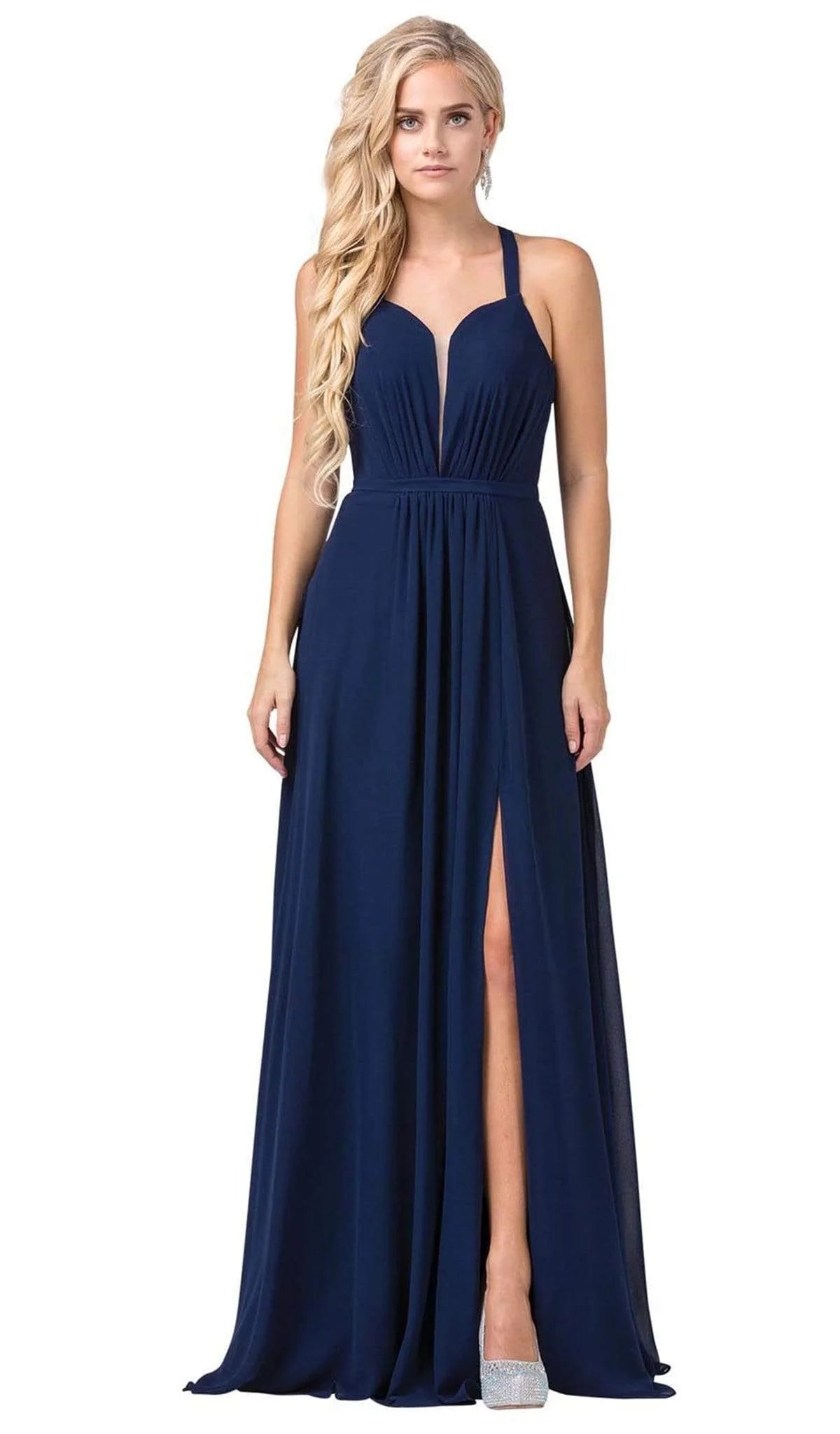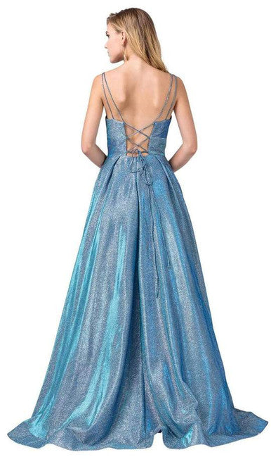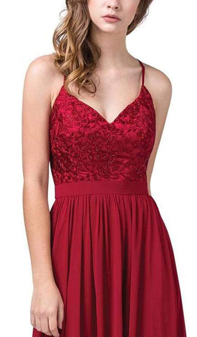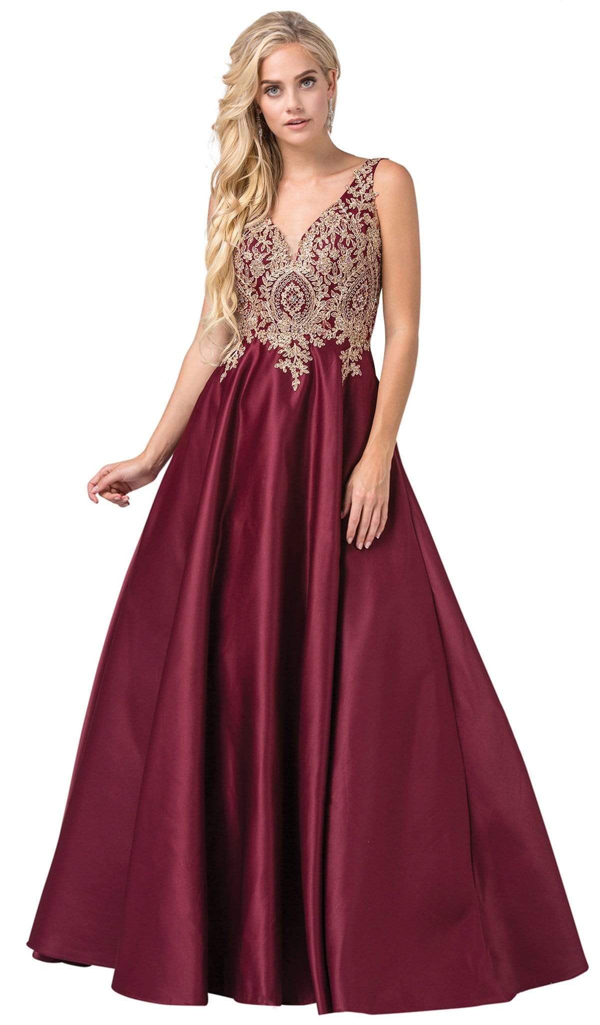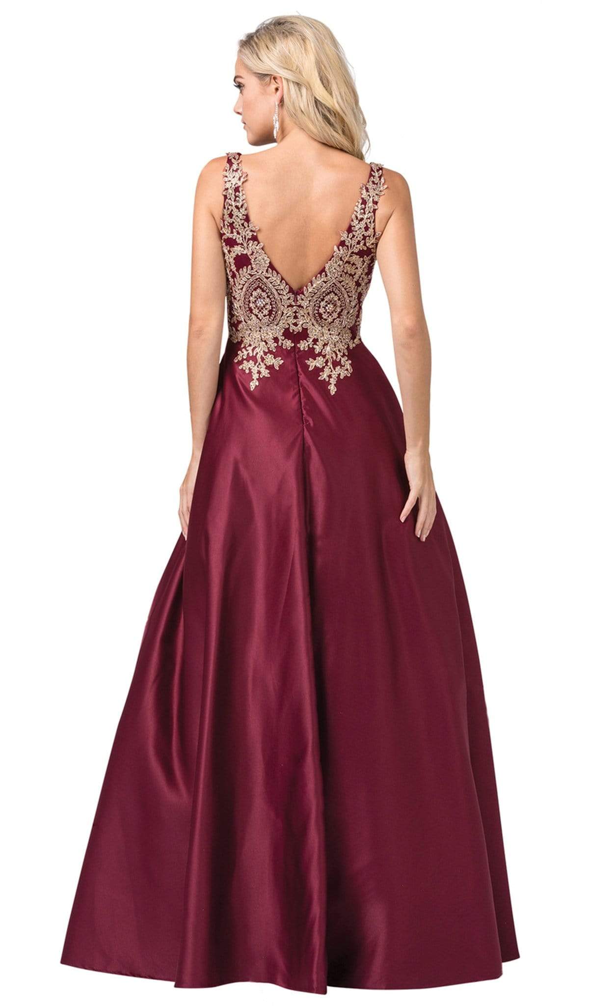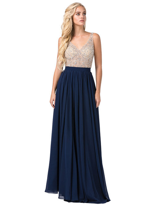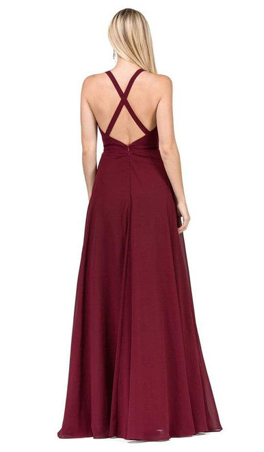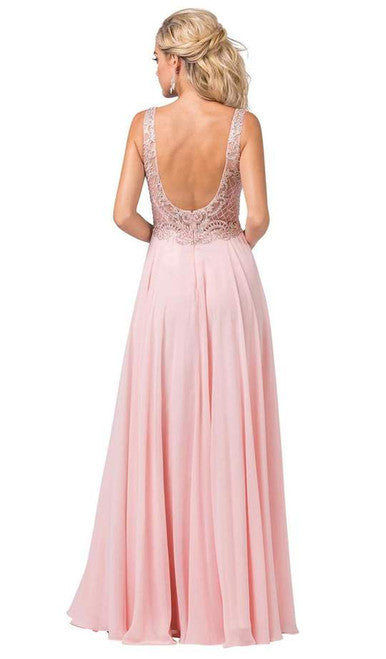 Vestido Largo Cuello V Bordado Sin Mangas Dancing Queen 2571